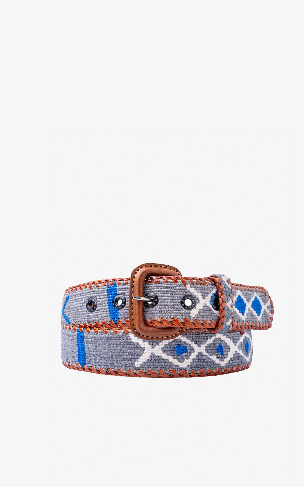 CINTURÓN ÉTNICO GRIS ROMBOS OCEANO
