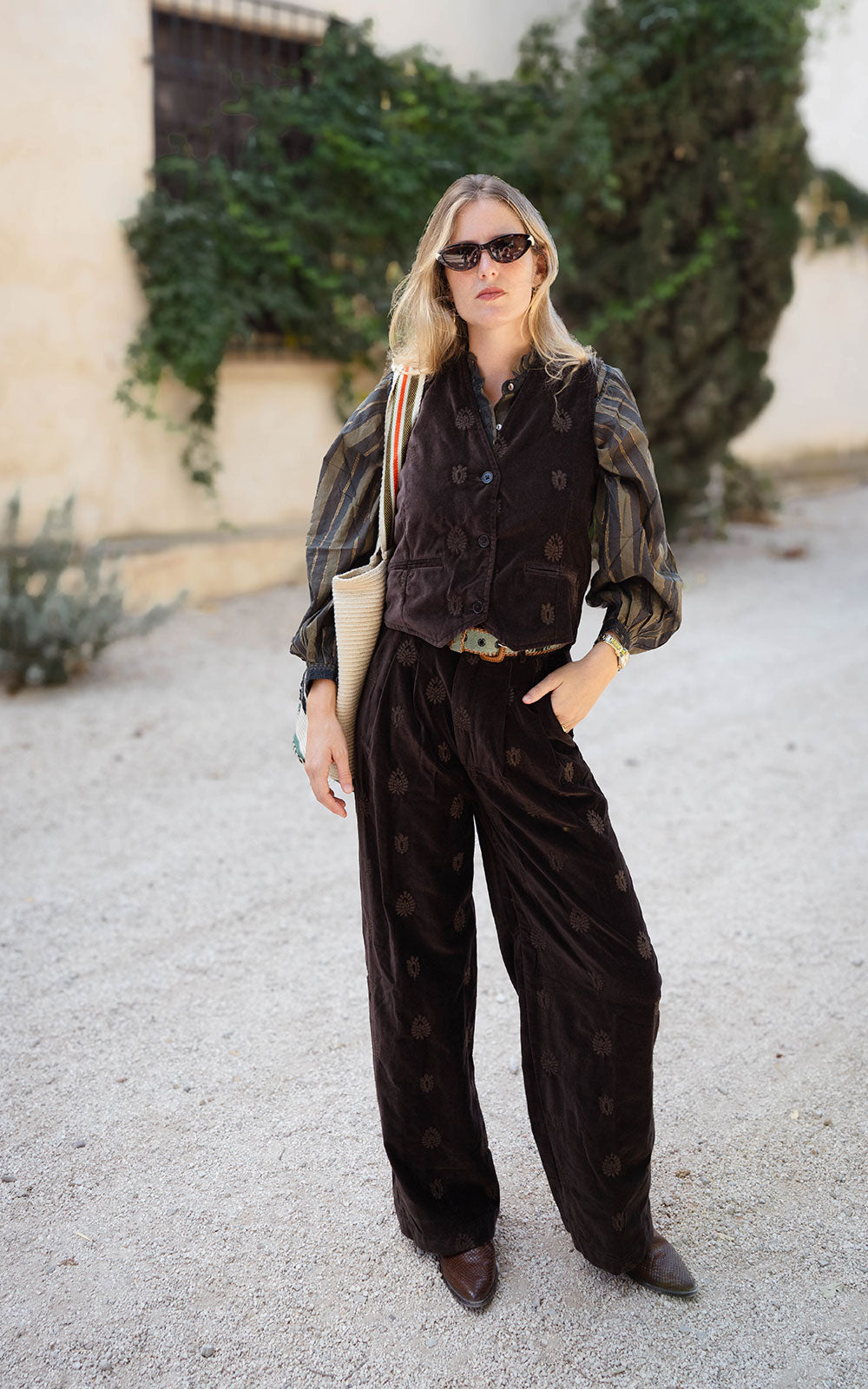 El chaleco Kafka en color macchiato Velluto está confeccionado en terciopelo de algodón, un tejido...