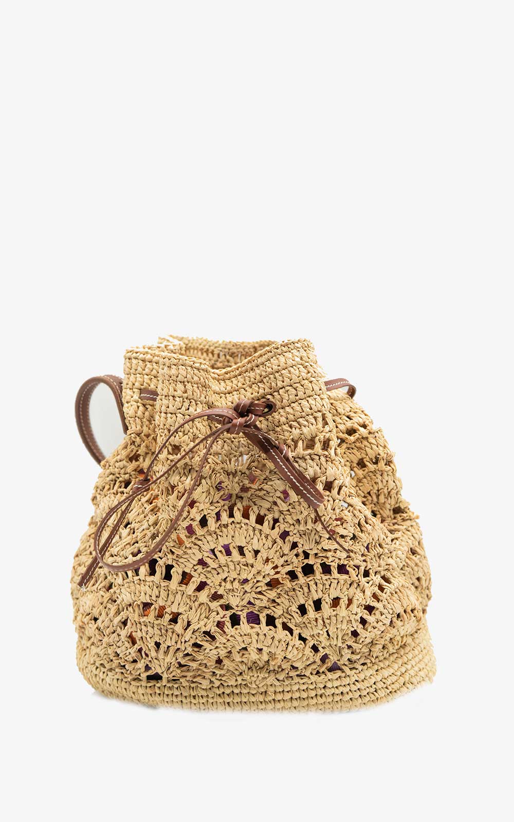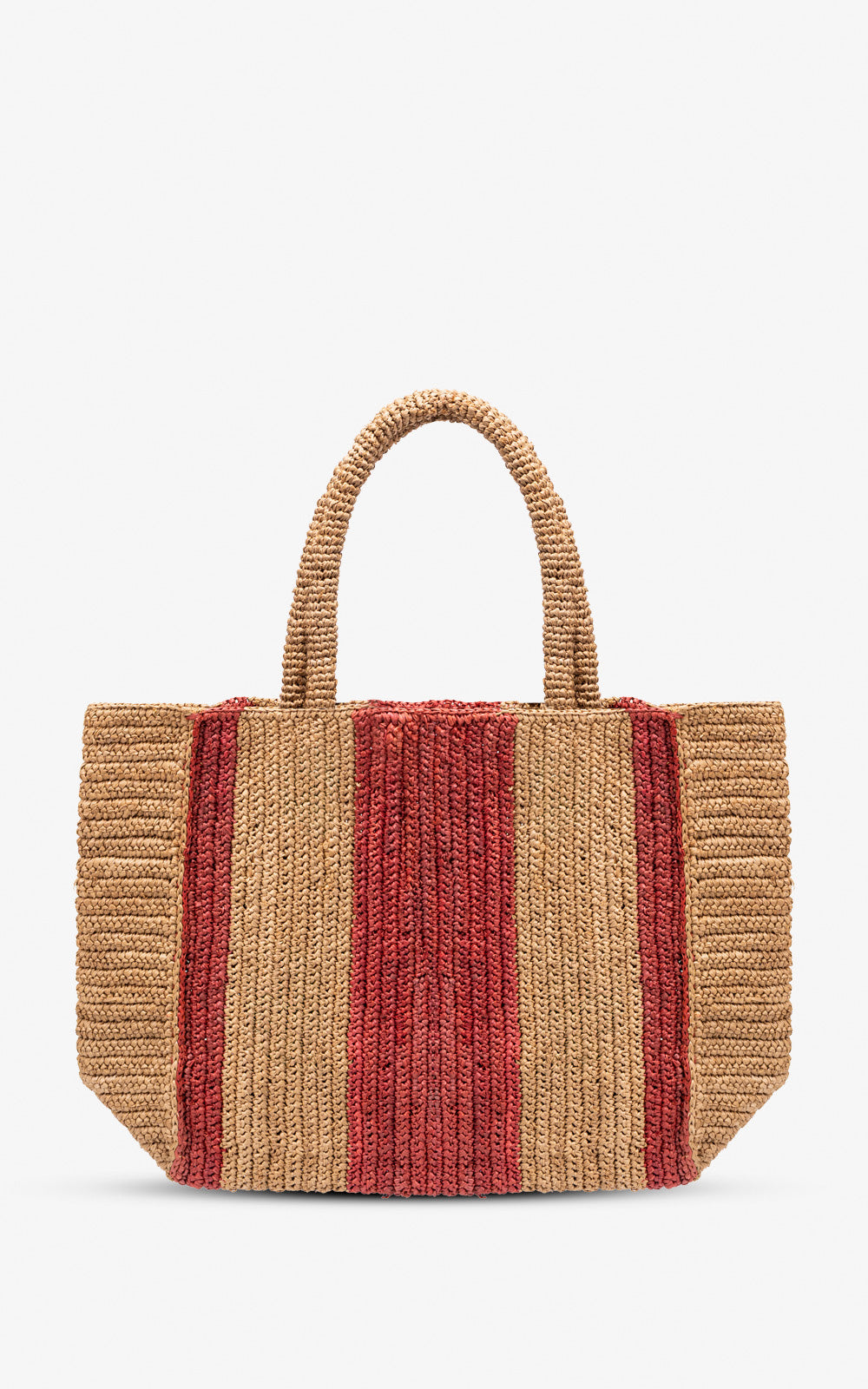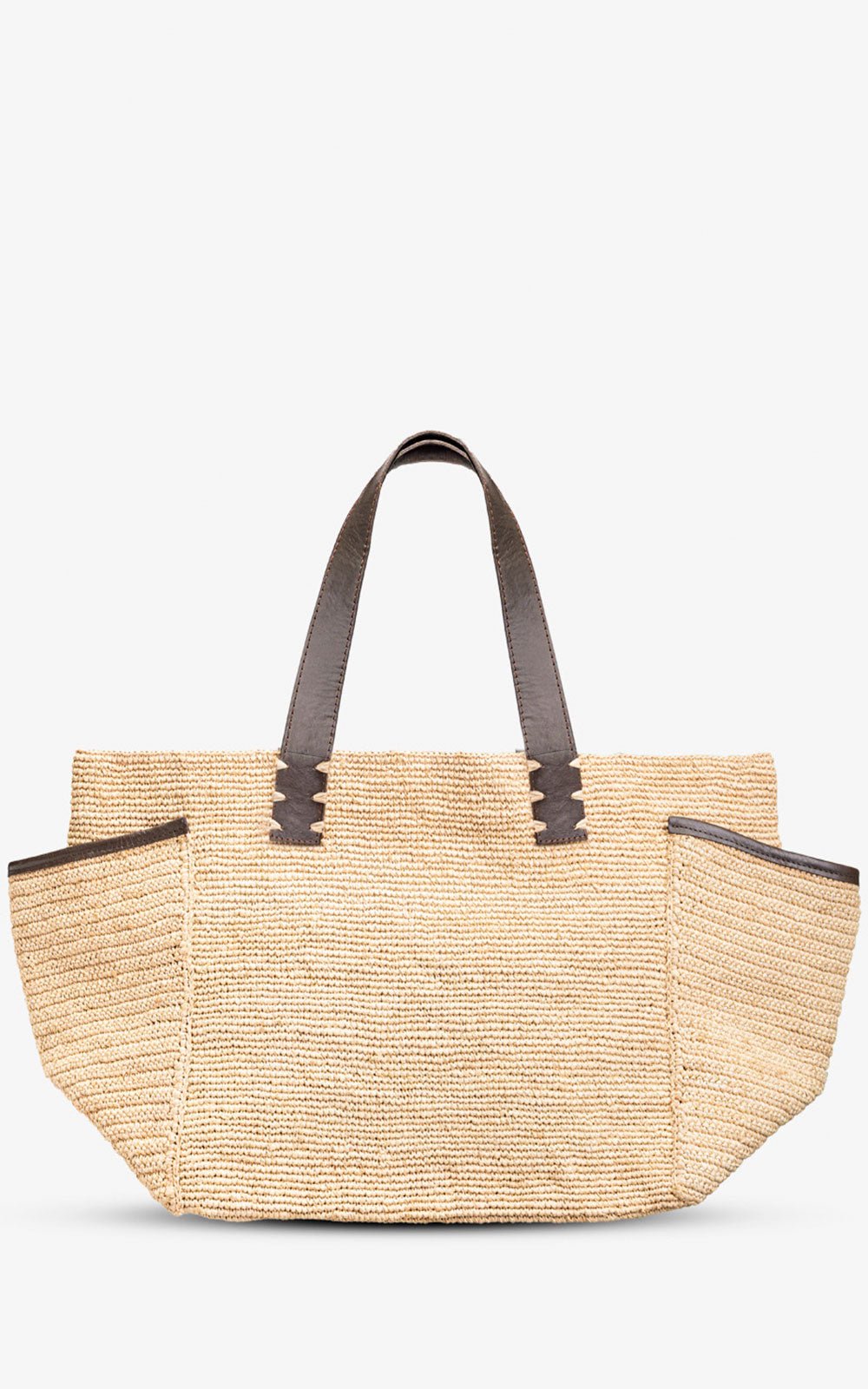 Completely made of natural raffia Vegetable leather handles and logo print Made in Madagascar Height:...