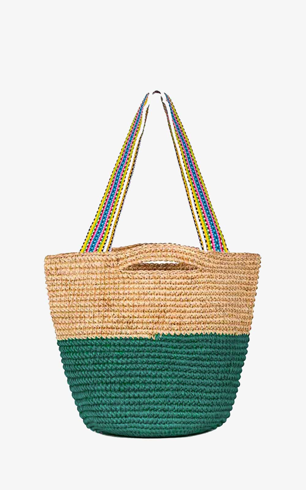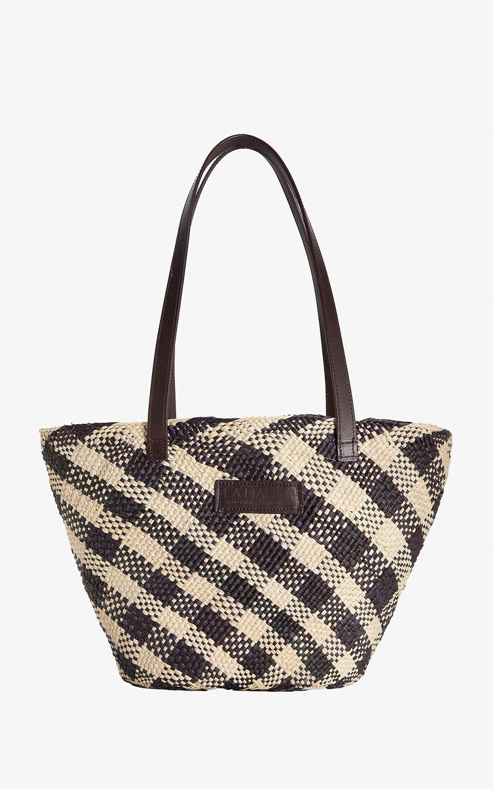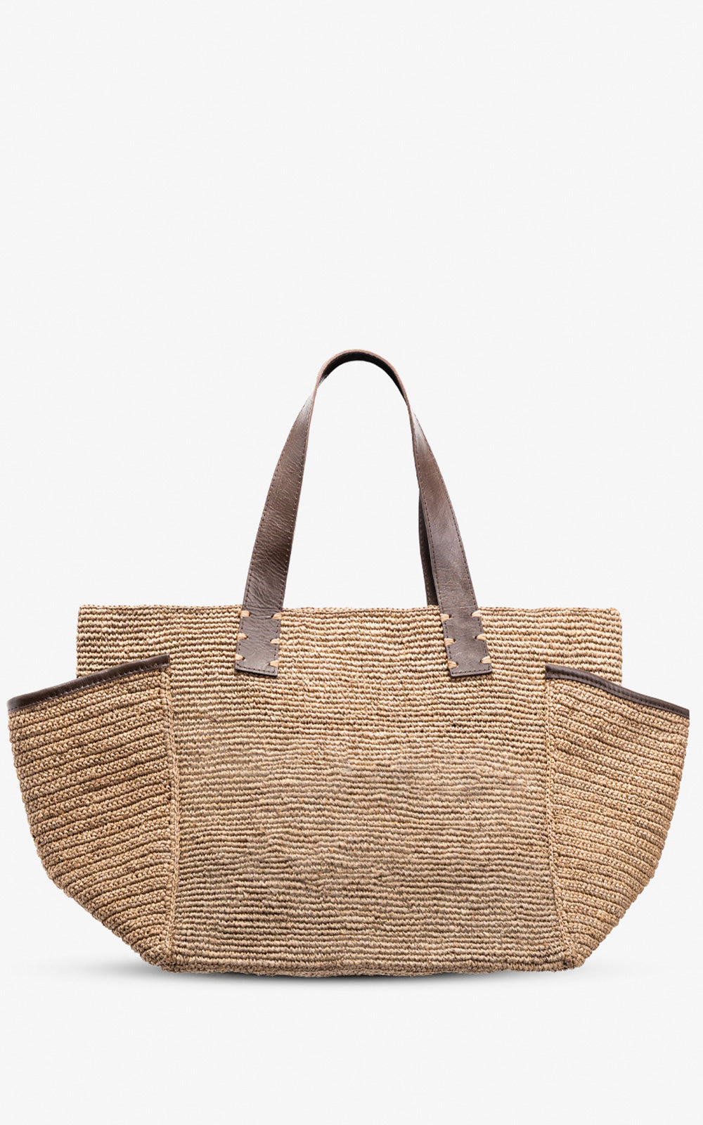 Completely made of natural raffia Vegetable leather handles and logo print Made in Madagascar Height:...