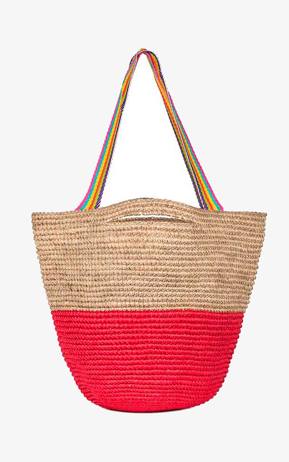 Made with natural iraca palm leaves Vegetable leather handles and logo print Made in Colombia...