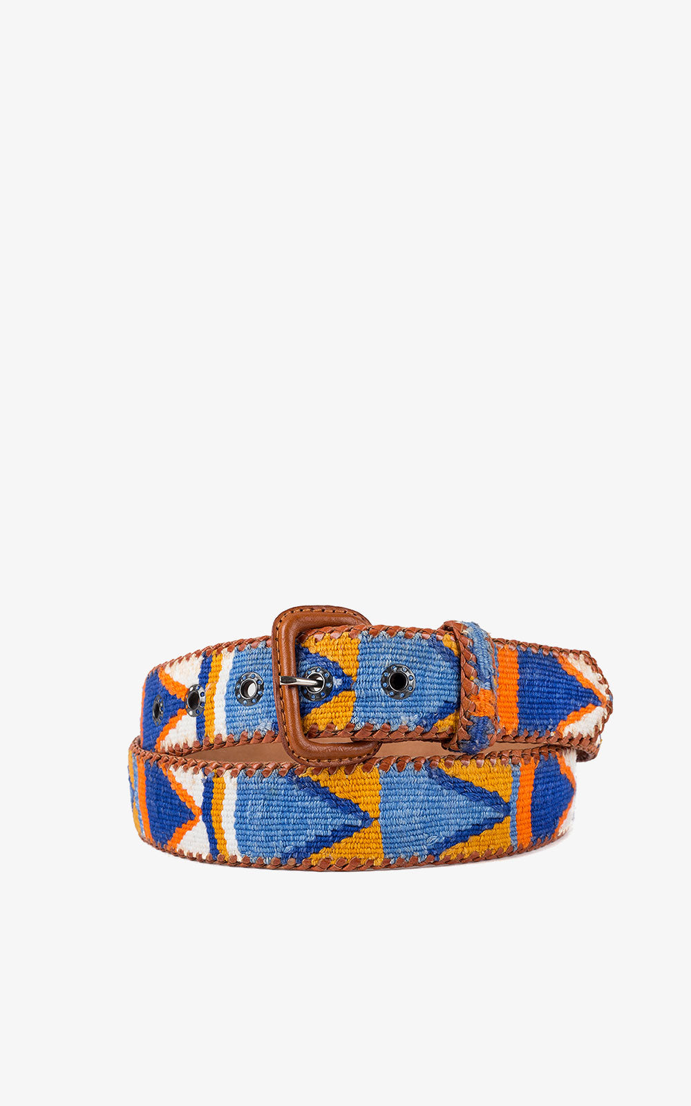 ETHNIC BLUE YELLOW ZIGZAG BELT