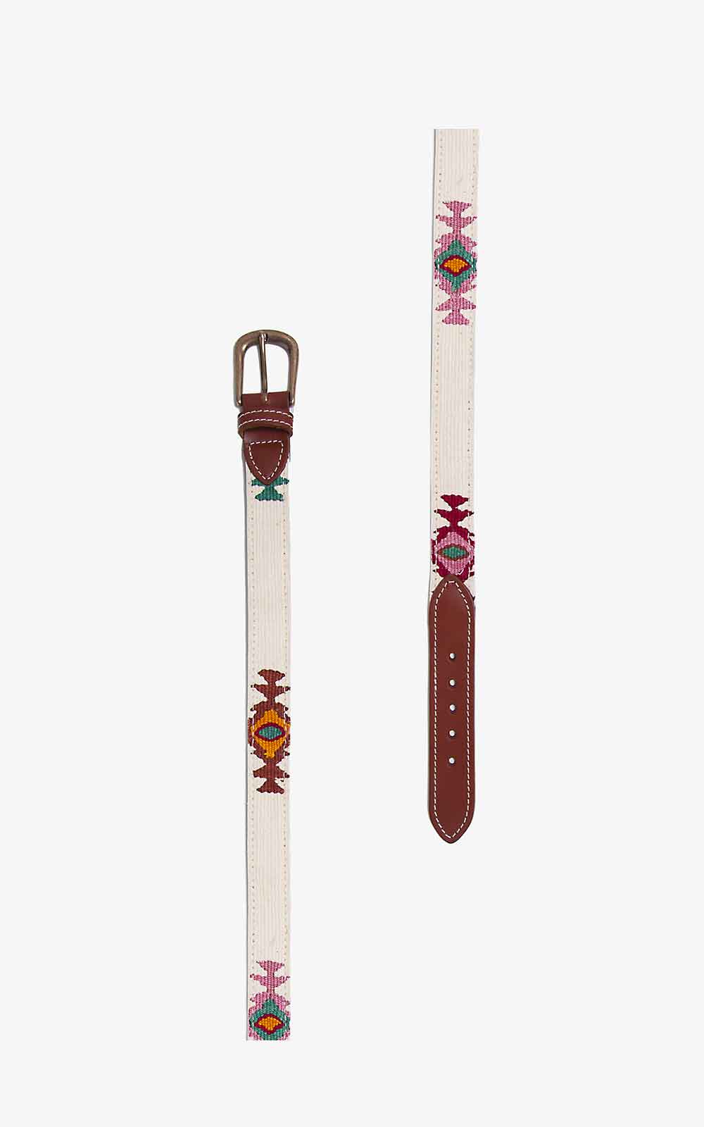 Belts made of leather base and with ethnic decorations in different colors woven with cotton...