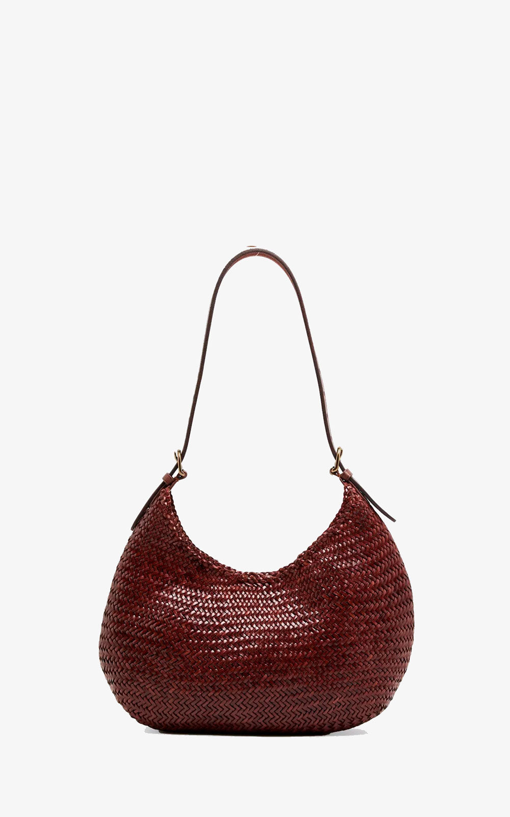 El bolso Santa Croce en color ciruela profundo (plum) es un bolso tejido a mano...