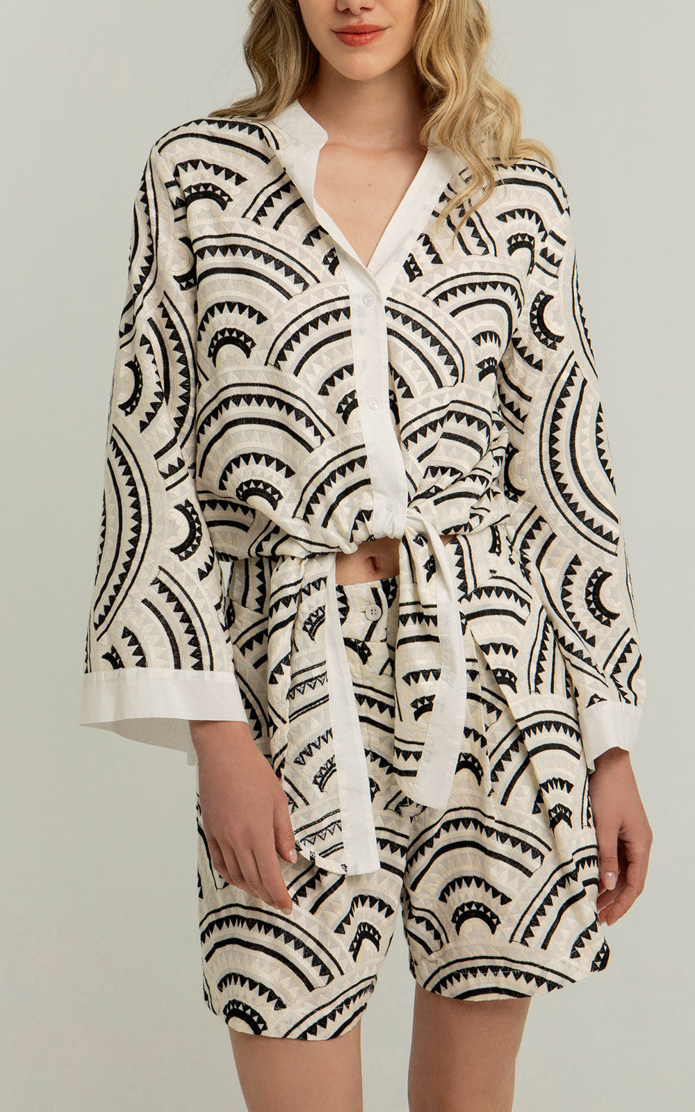 FRONT TIE TRIANGLE SHIRT WHITE BLACK ECRU