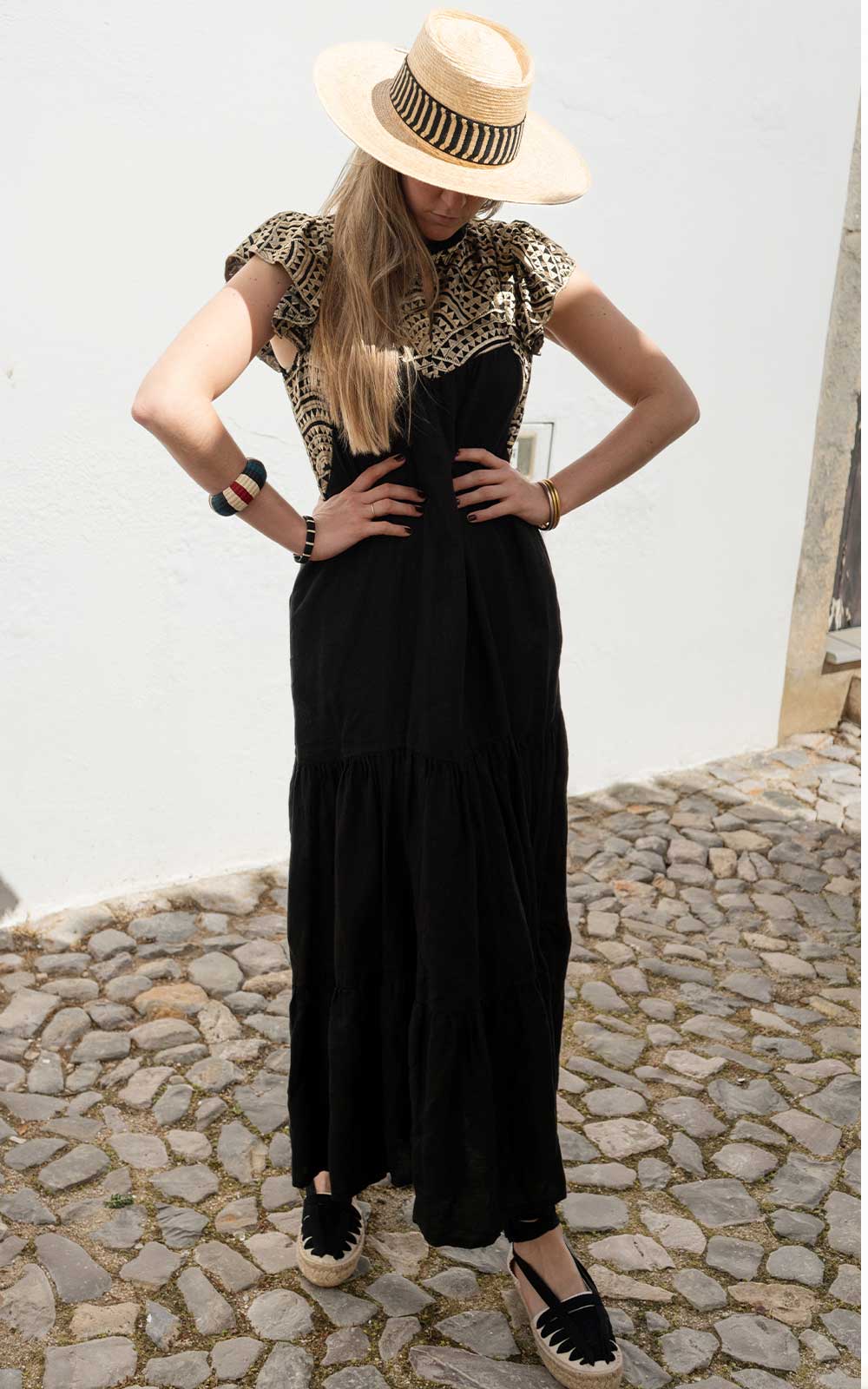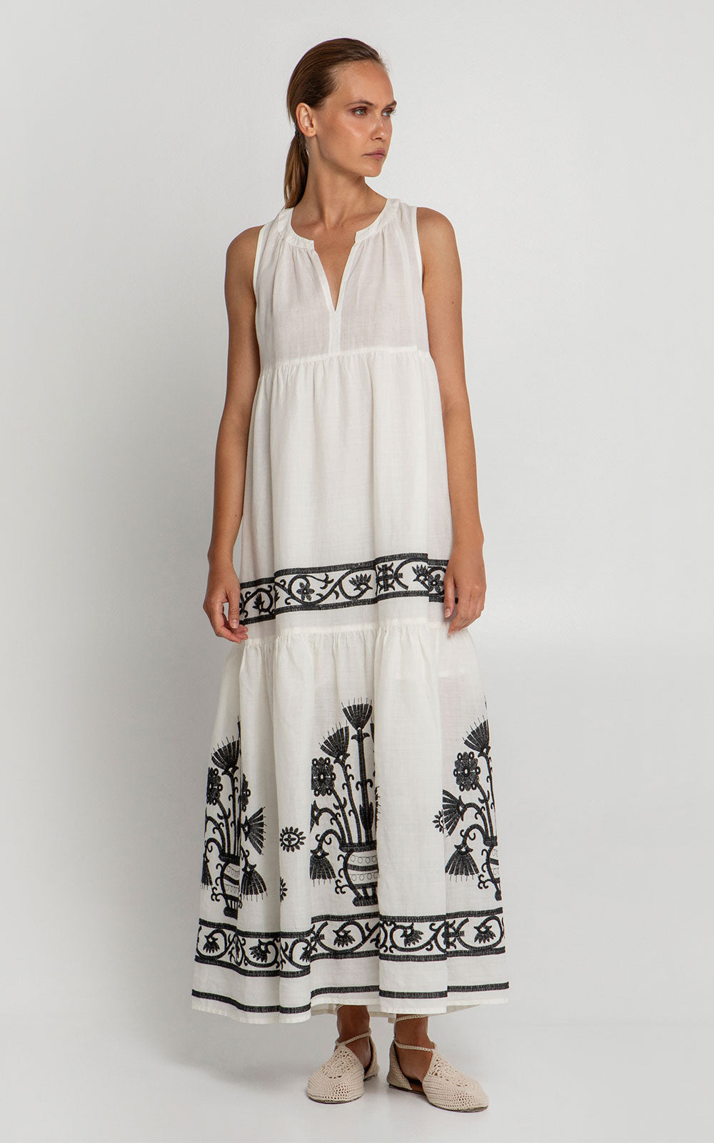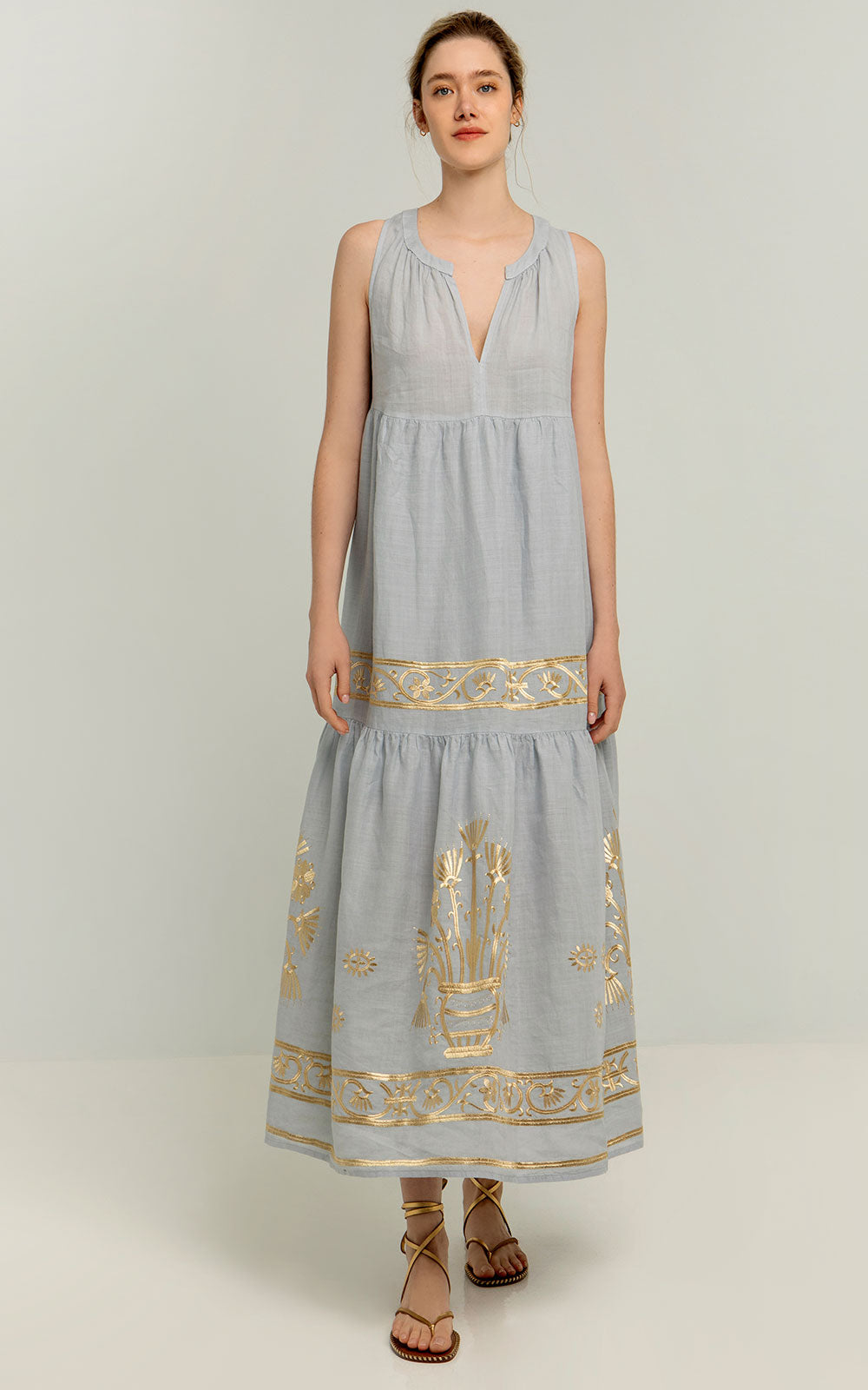 This sleeveless maxi dress by Greek Archaic Kori embodies the essence of Mediterranean summer with...