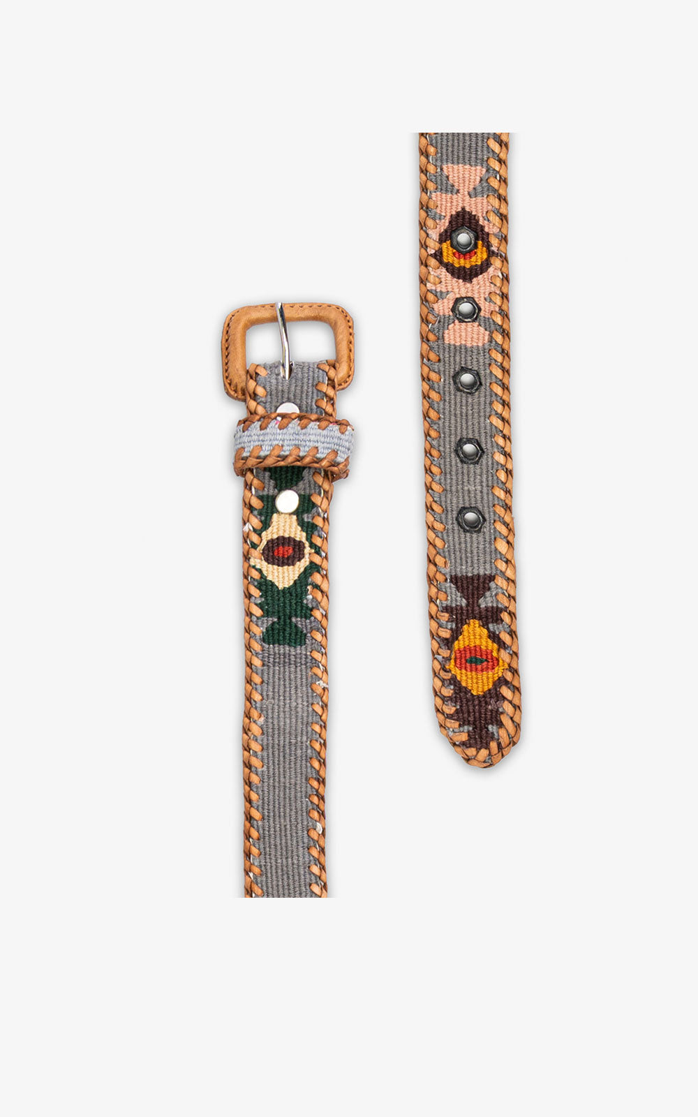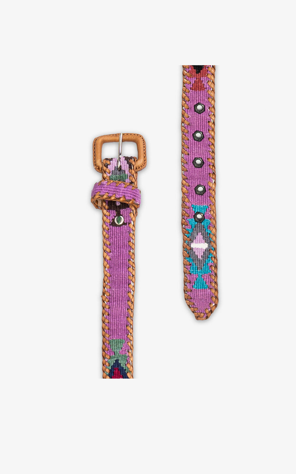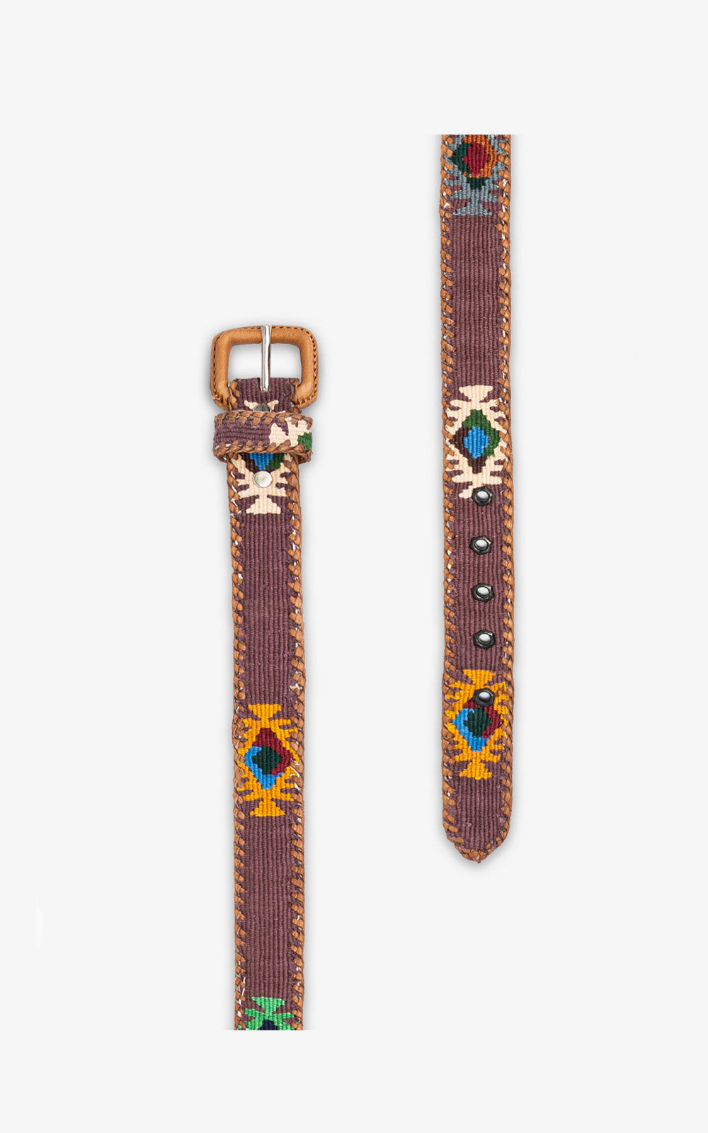 Leather-based belts with ethnic decorations of different colors braided with cotton threads. The ethnic rhombuses of...