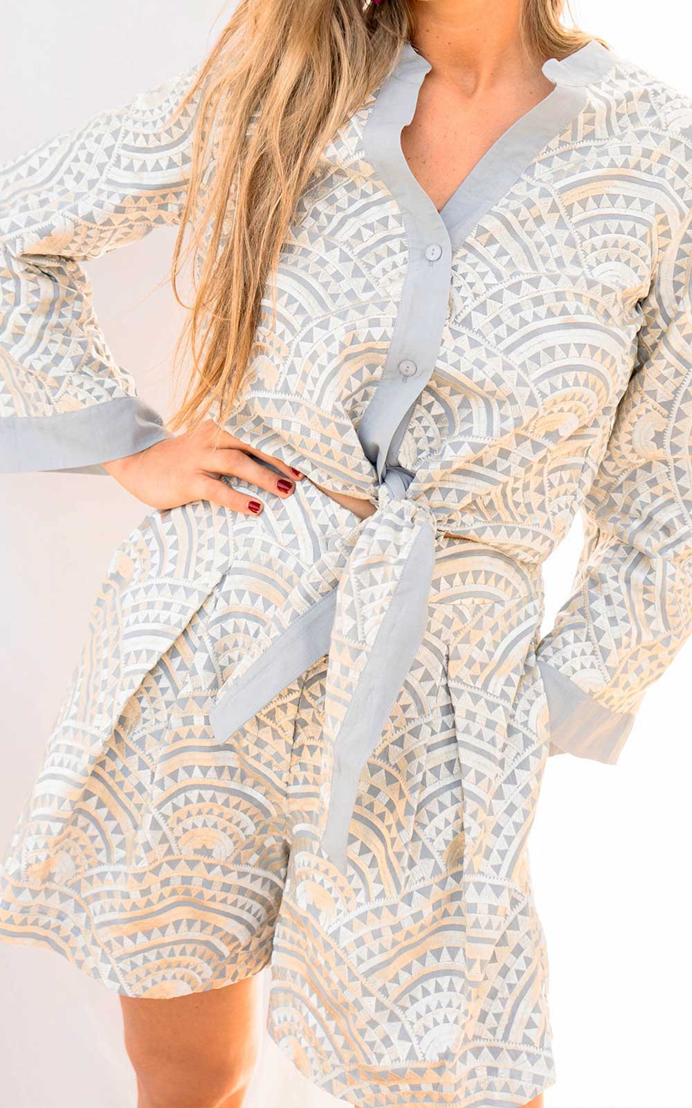 SHORT TRIANGLE PLEATES LIGHT GRAY CHAMPAGNE