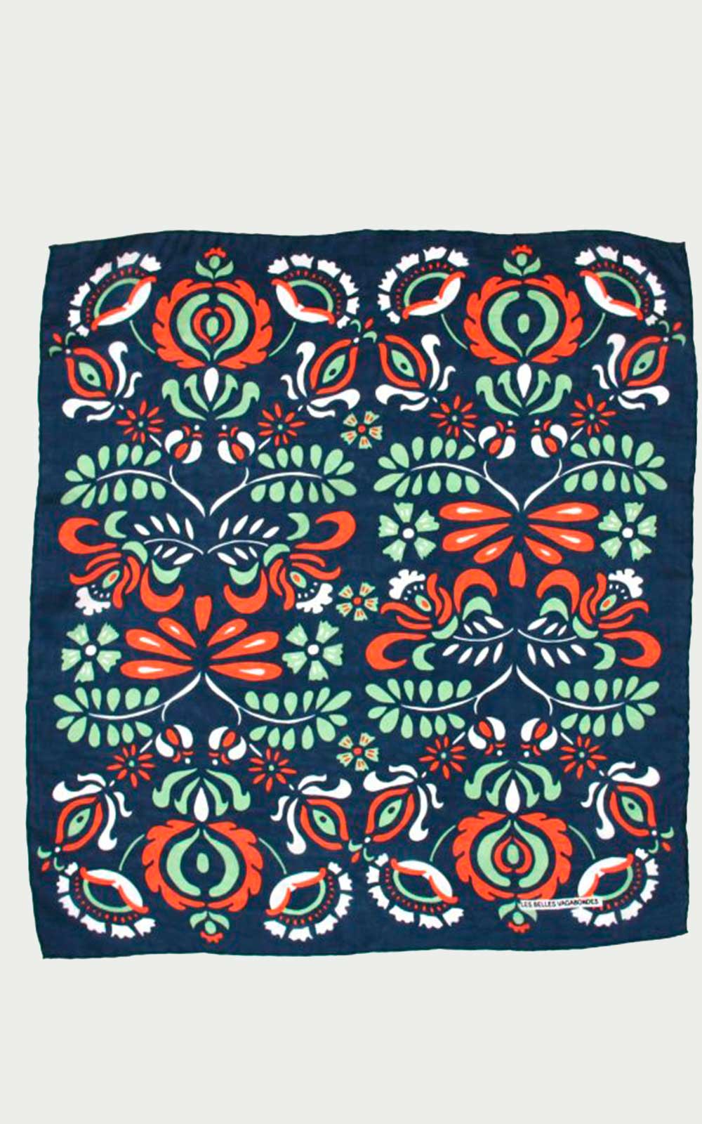 Mini scarves to wear tied around the neck Hand-drawn in France Printed in India 50x50...