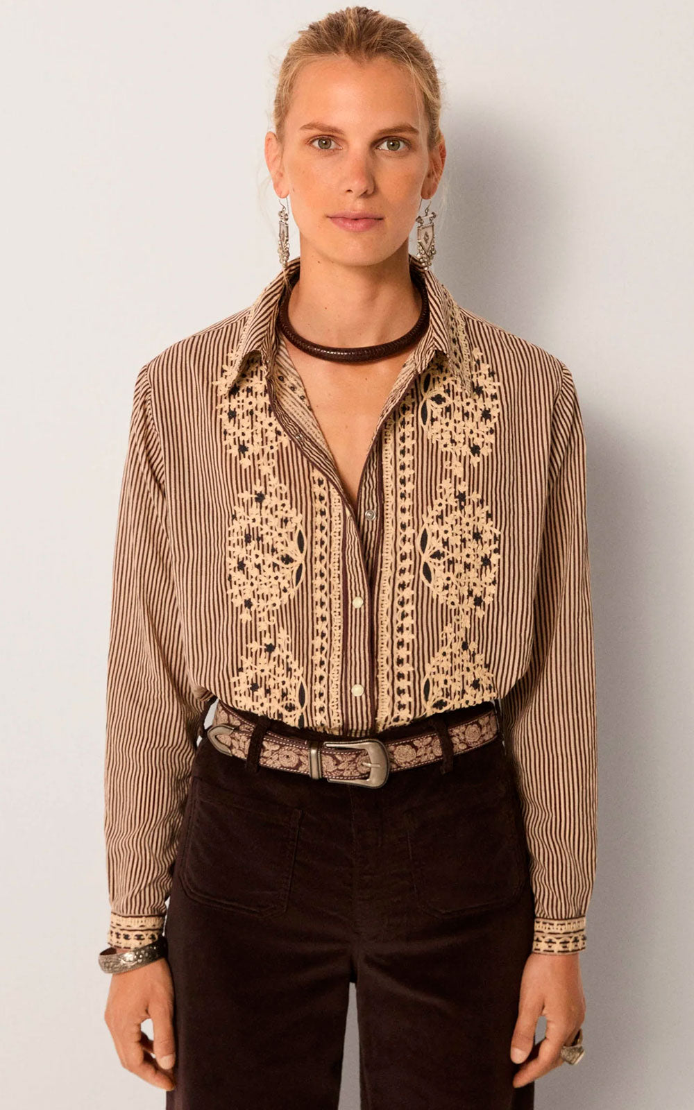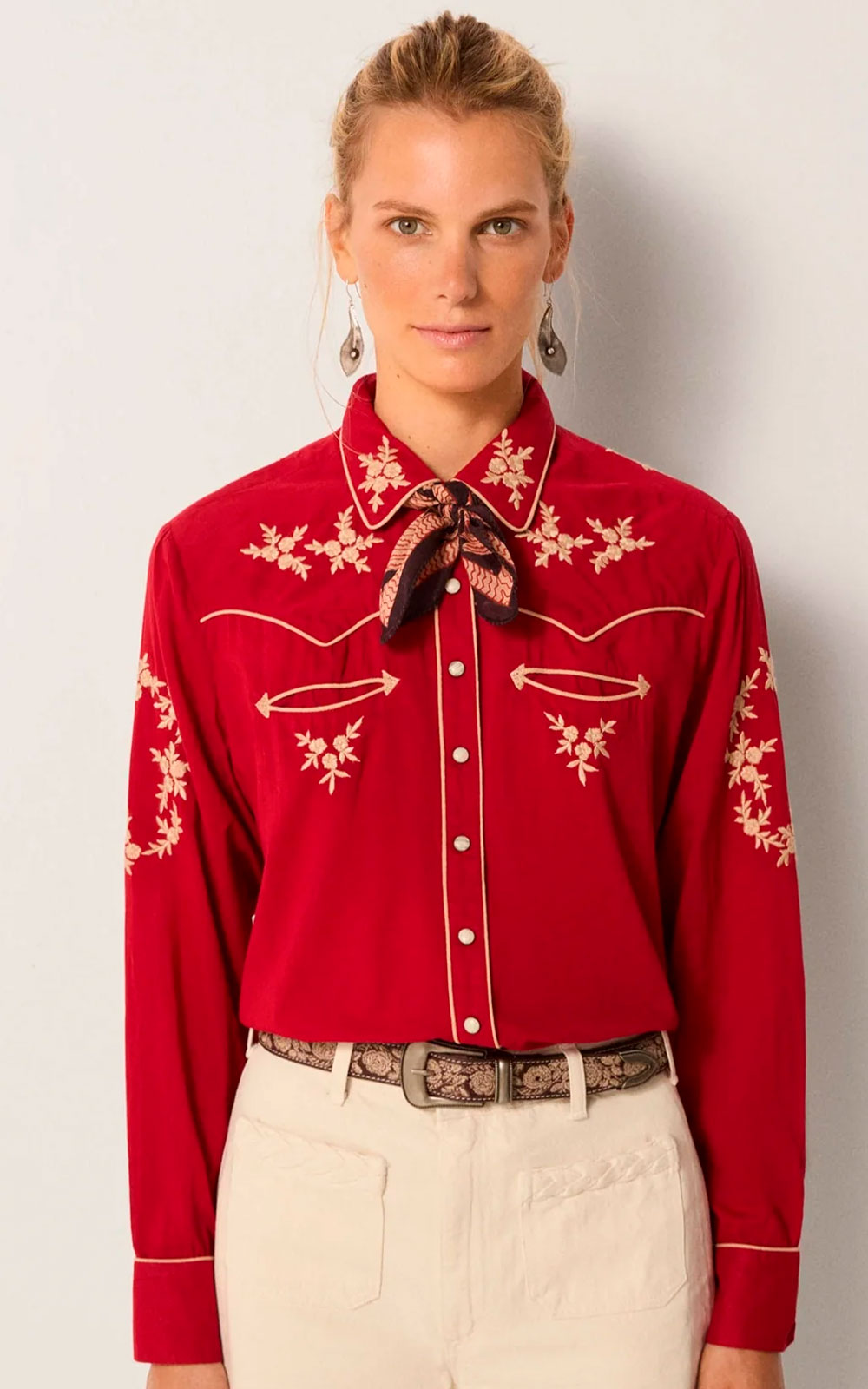 Blusa confeccionada en algodón suave, con un corte inspirado en las camisas western tradicionales. Su...