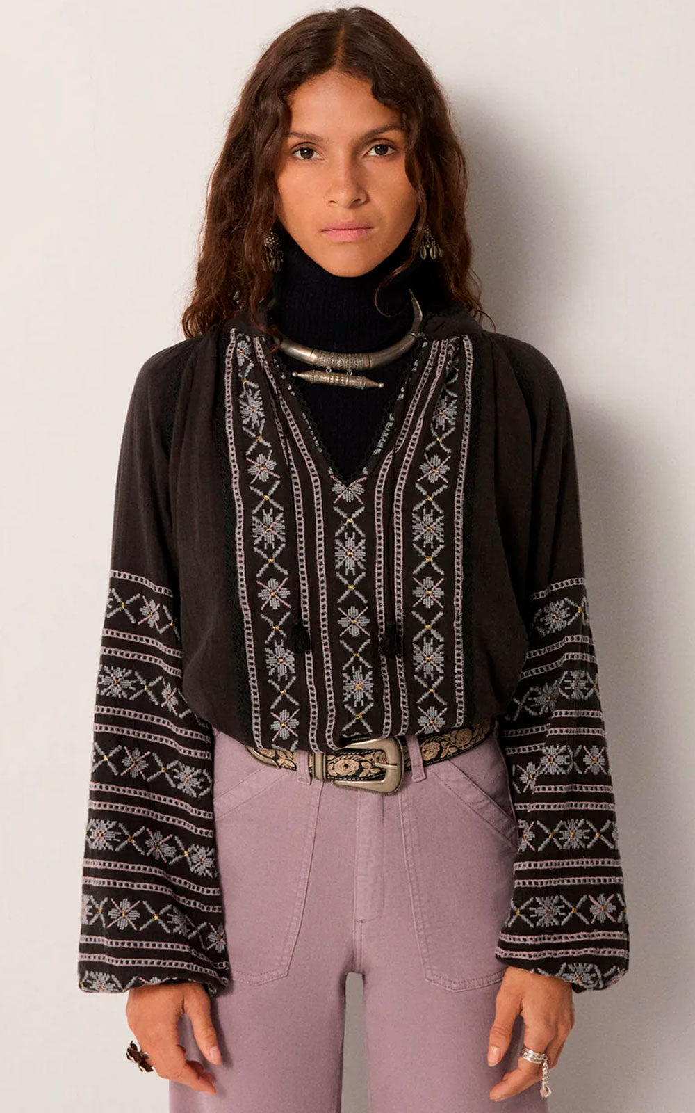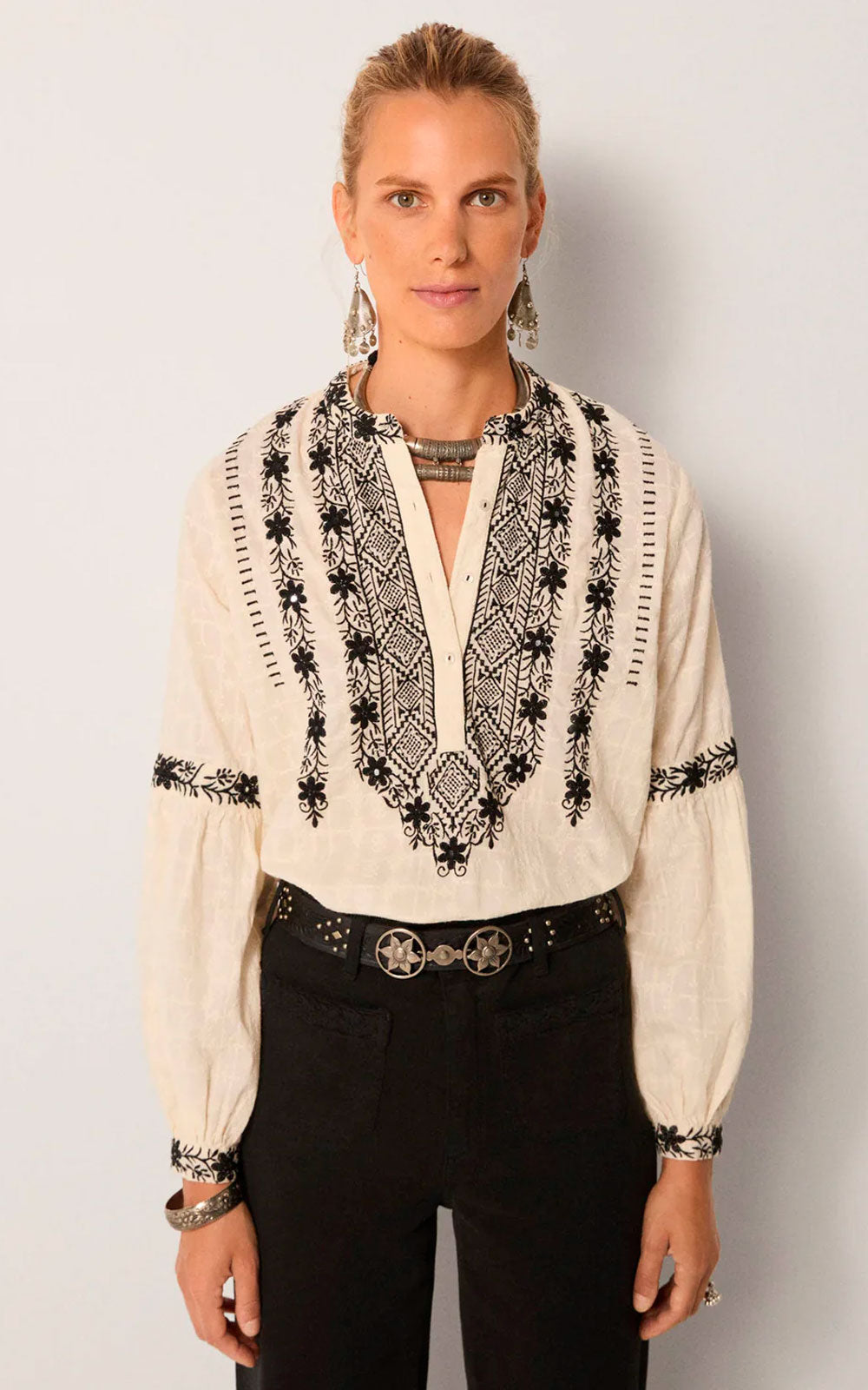 Blusa confeccionada en voile de algodón suave y aireado, un tejido ligero que aporta frescura...