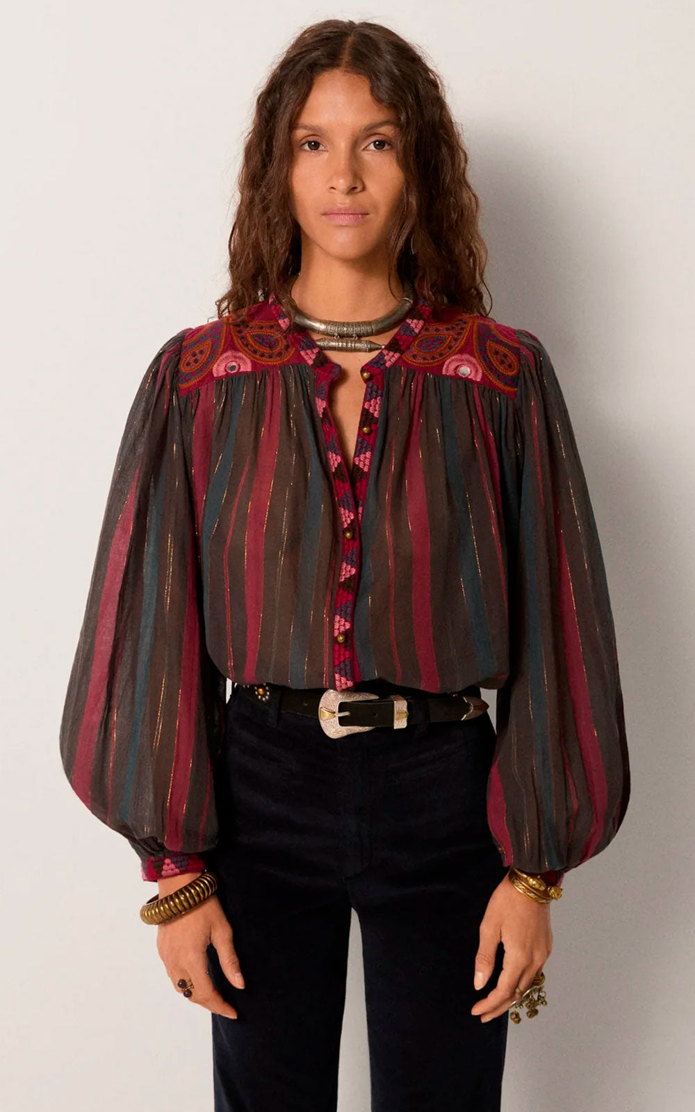 La blusa Meera está confeccionada en voile de algodón fino con hilos metálicos, que le...