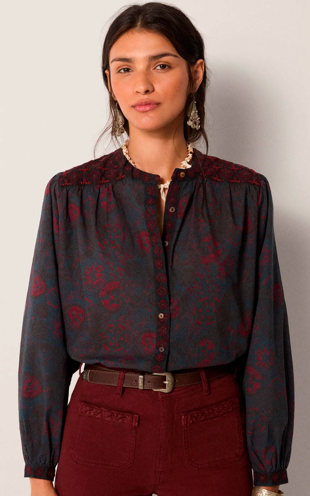 La blusa Bruna está confeccionada en voile de algodón con una textura arrugada natural, ligera...