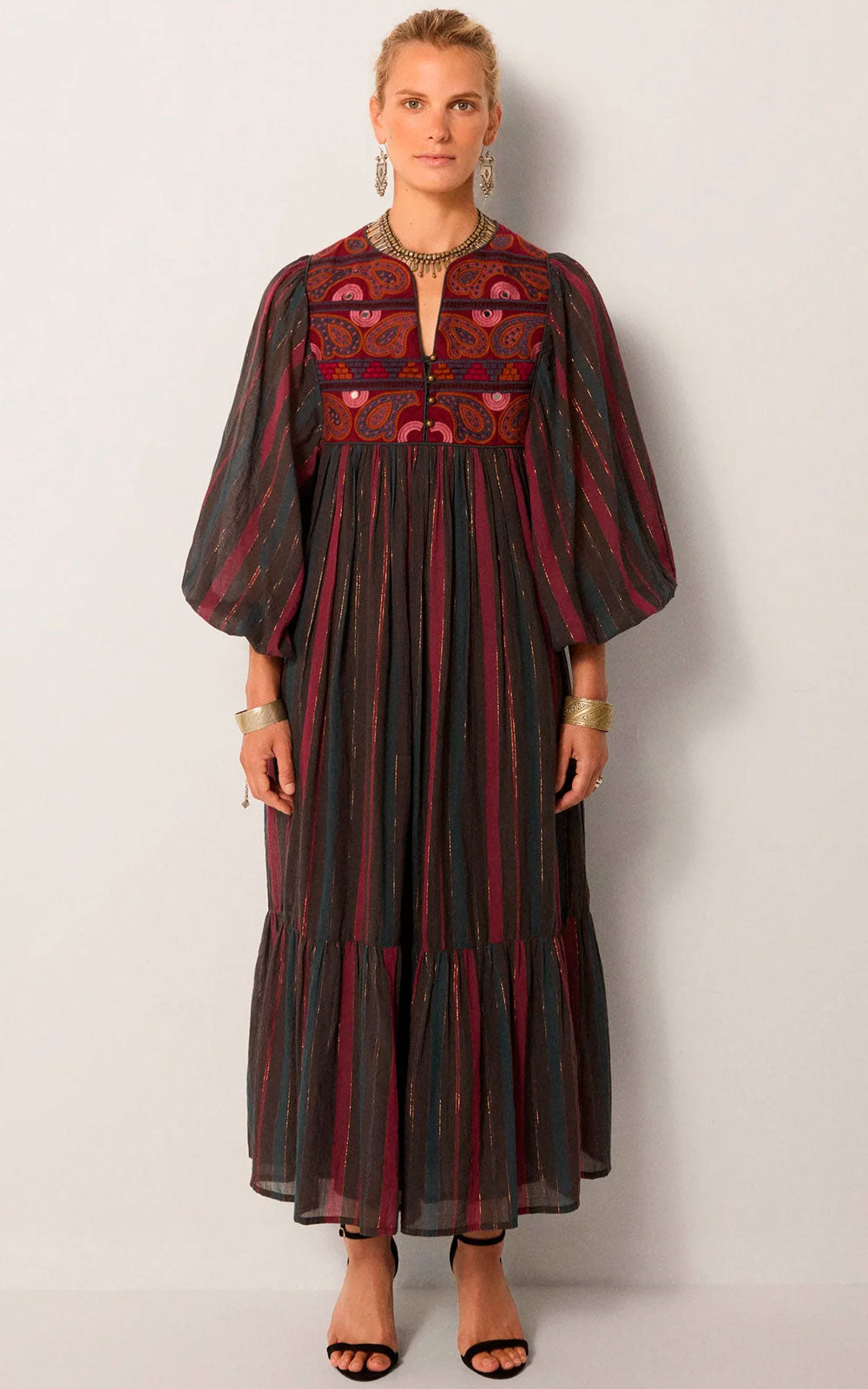 El vestido Isadora está confeccionado en voile de algodón semitransparente con finas líneas metálicas que...