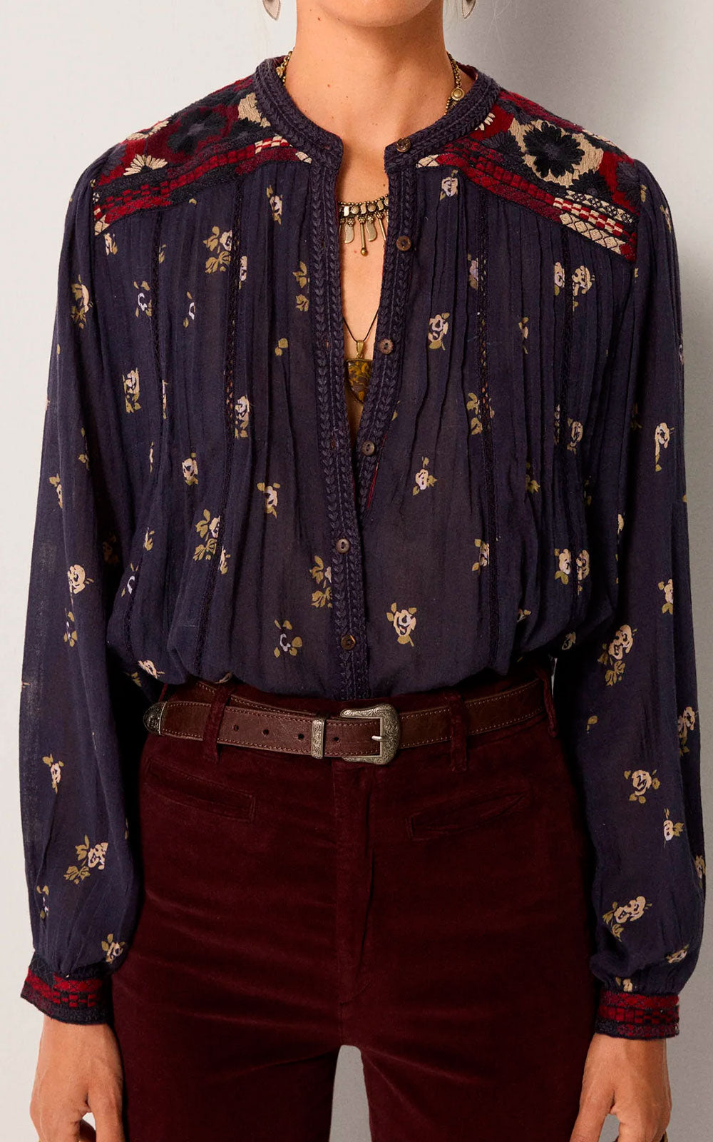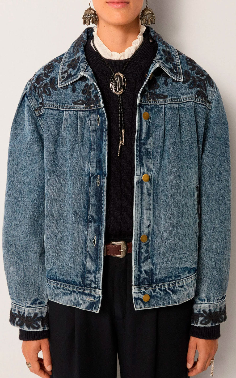 Blusa confeccionada en denim de algodón lavado, estructurado pero suavizado con el uso. Su azul...