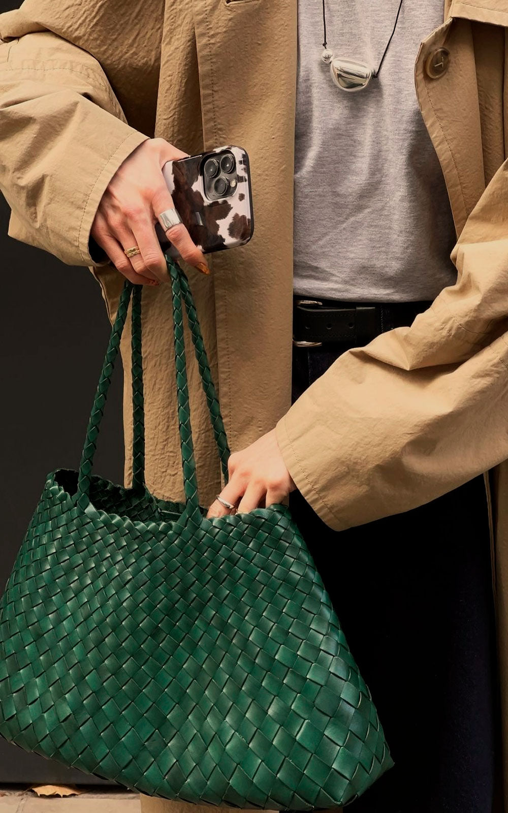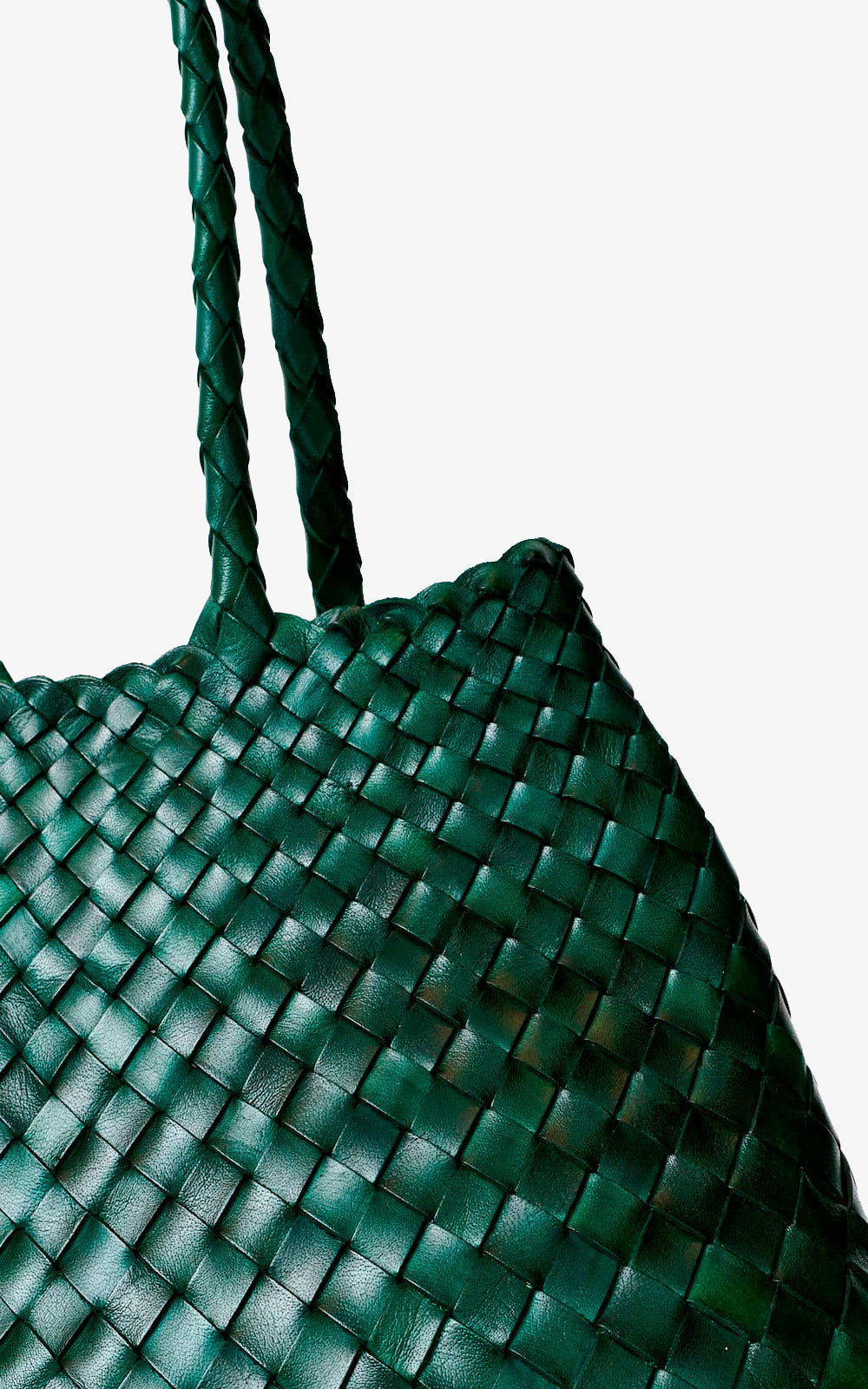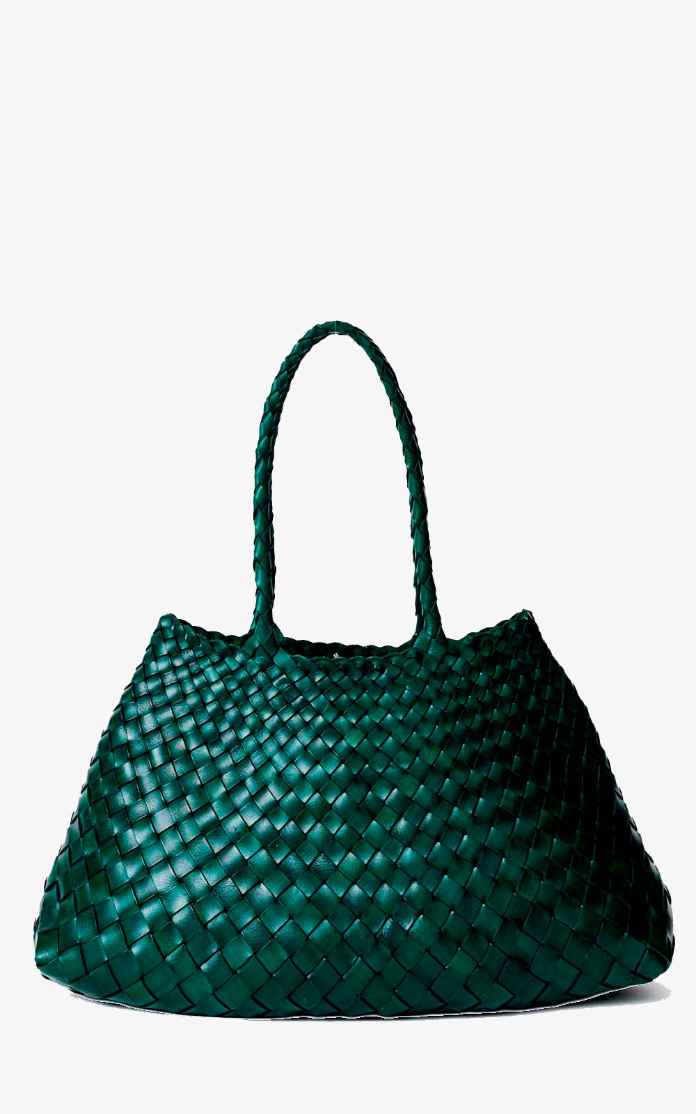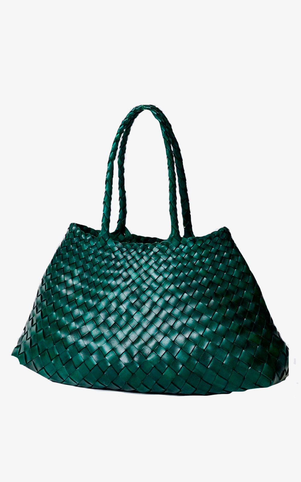 El bolso Santa Croce en color Forest está elaborado a mano con piel de ternera búfala de la más alta calidad. Cada tira de cuero se entrelaza de forma irregular para formar una silueta fluida que se estrecha en la parte superior, logrando un equilibrio entre funcionalidad y elegancia.