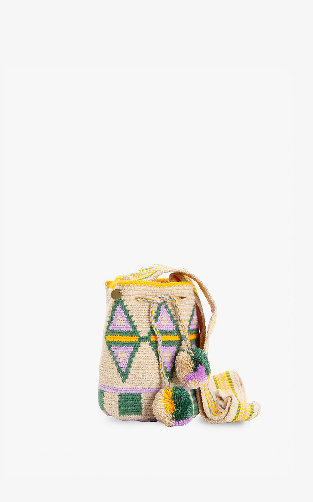 Crochet bag made by hand using the crochet technique by a community of artisans from La Guajira. The handle is shoulder strap style. This bag is ideal for girls between 8-14 years old.