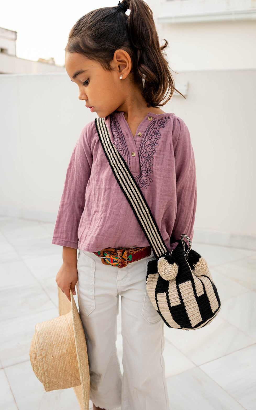 Crochet bag made by hand using the crochet technique by a community of artisans from La Guajira. The handle is shoulder strap style. This bag is ideal for girls between 8-14 years old.