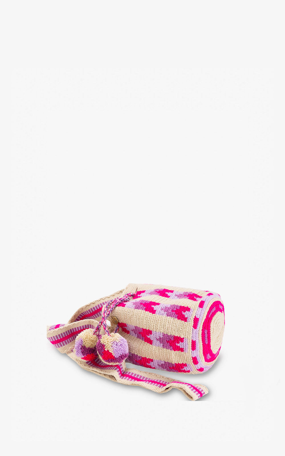 Bucket bag made by hand using the crochet technique by a community of artisans from La Guajira. The handle is shoulder bag style. This format is ideal for girls between 8-14 years old.