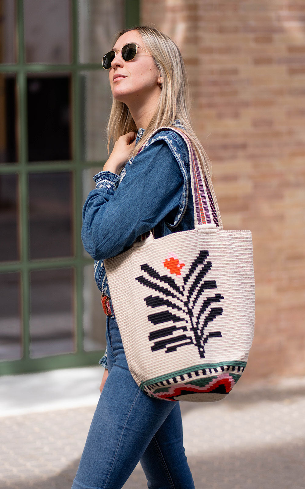 Bag handcrafted using the crochet technique by artisans from La Guajira in Colombia. Each bag is made with cotton threads of different colors.