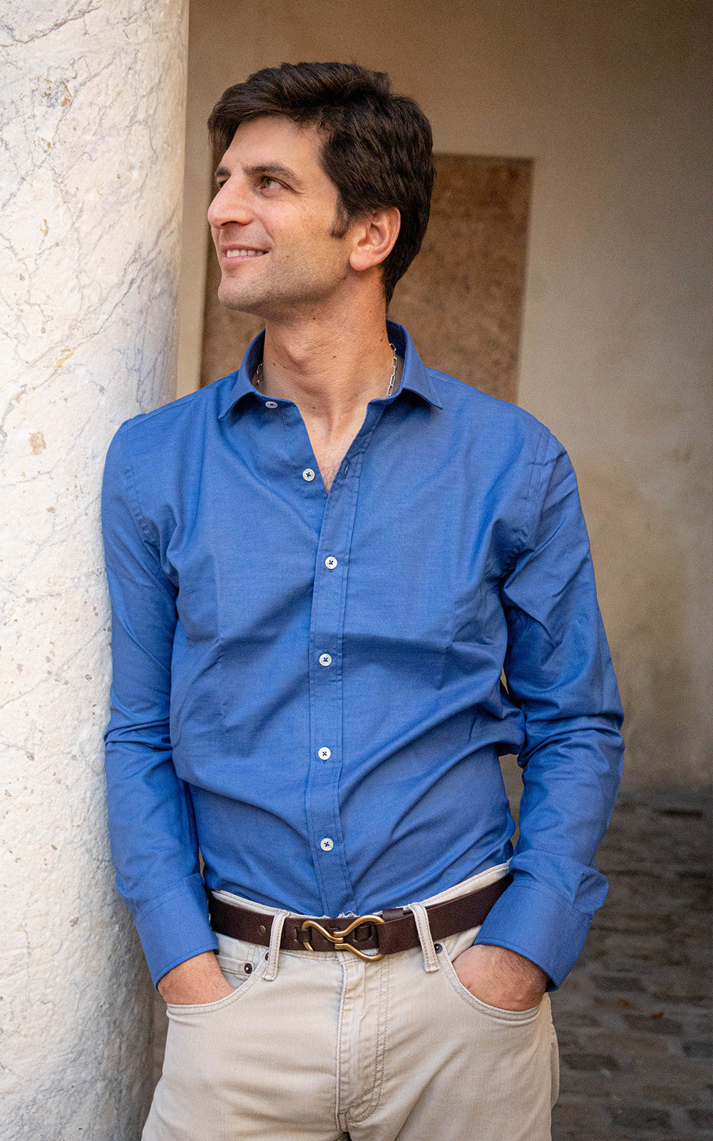 Slim fit extra soft cotton yarn shirt. Made in Porto