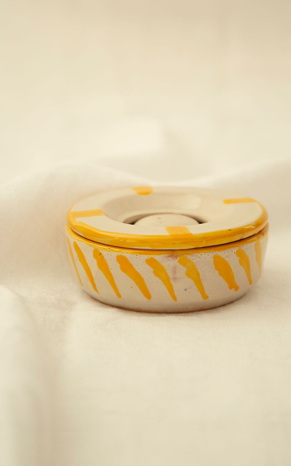 Ceramic ashtray with double lid and striped design hand painted in a Granada artisan workshop.