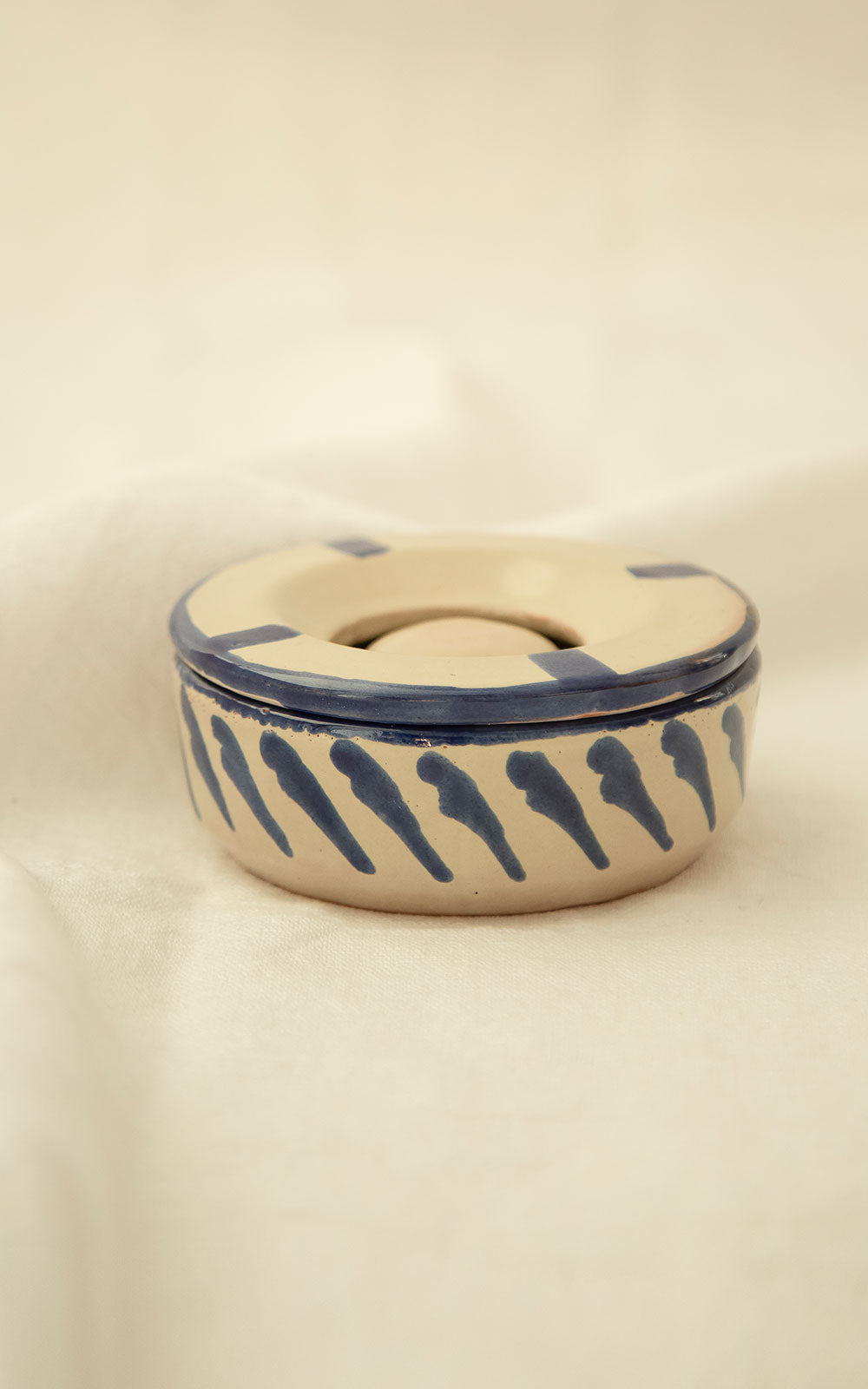 Ceramic ashtray with double lid and striped design hand painted in a Granada artisan workshop.