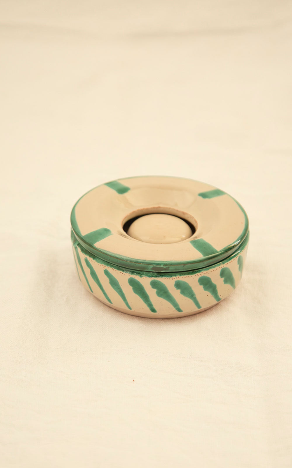 Ceramic ashtray with double lid and striped design hand painted in a Granada artisan workshop.