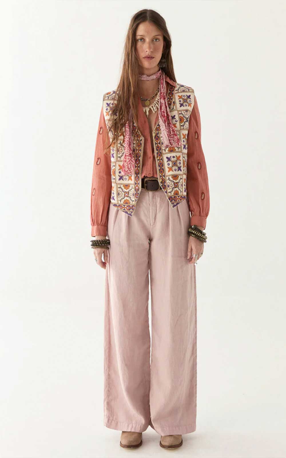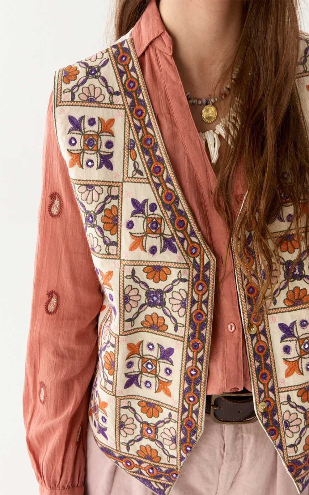 Inspired by retro tile patterns and boho nostalgia, the sunset earth tones—burnt orange, deep purple, and soft cream—give it that “I just found this in a hidden Marrakech market” vibe.