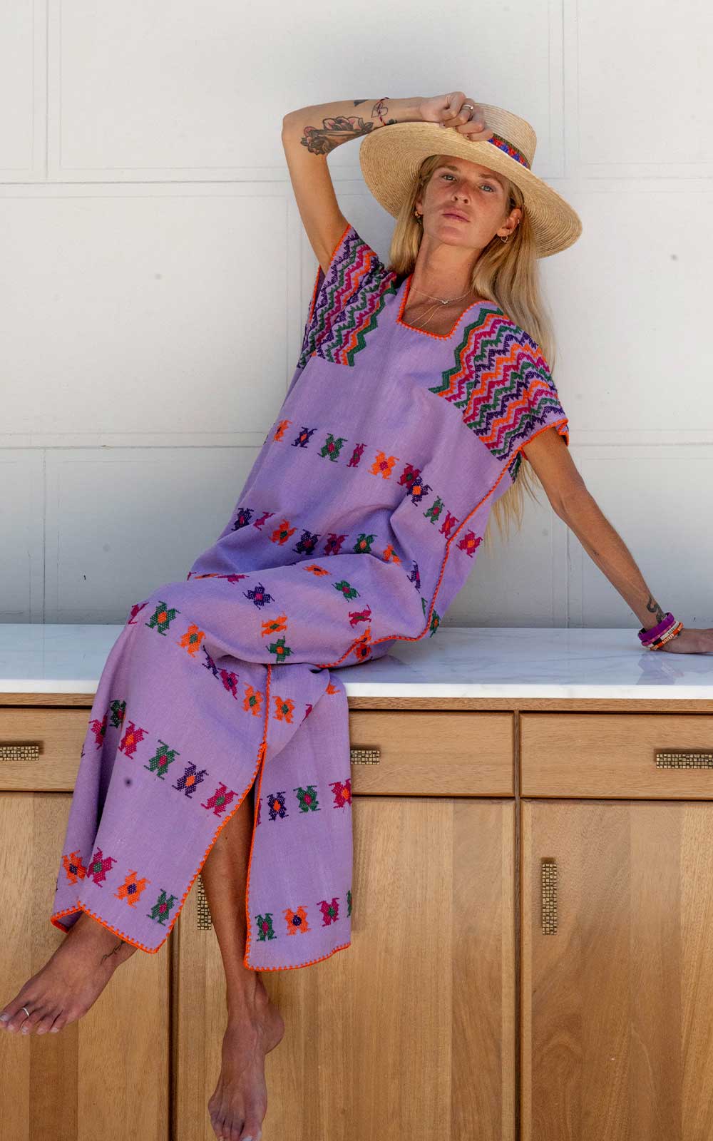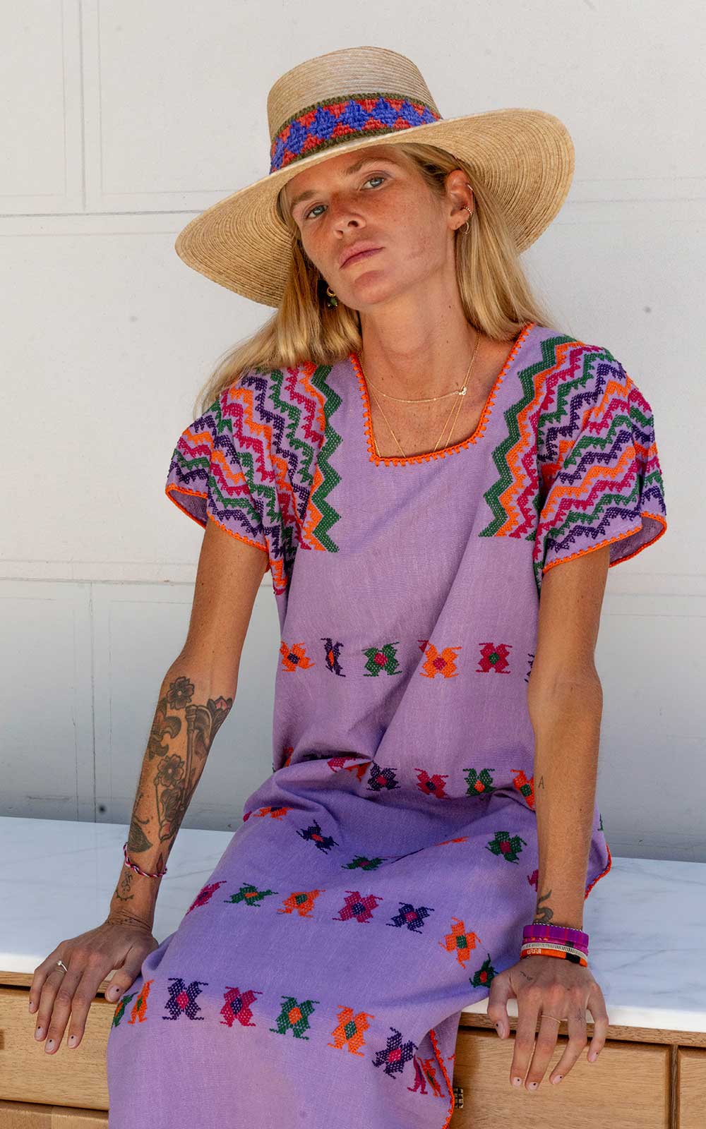 This single-panel maxi dress, an icon of traditional Oaxacan dress, has won over fashion editors around the world for its timeless silhouette and authentic character. In this edition, we've subtly lengthened the pattern to stylize the figure and provide a more elegant and flattering drape.