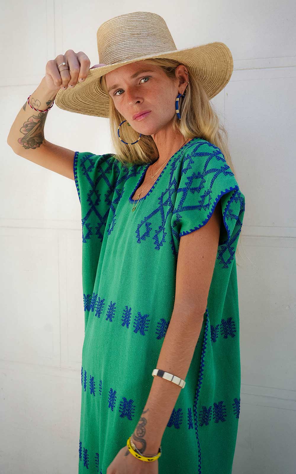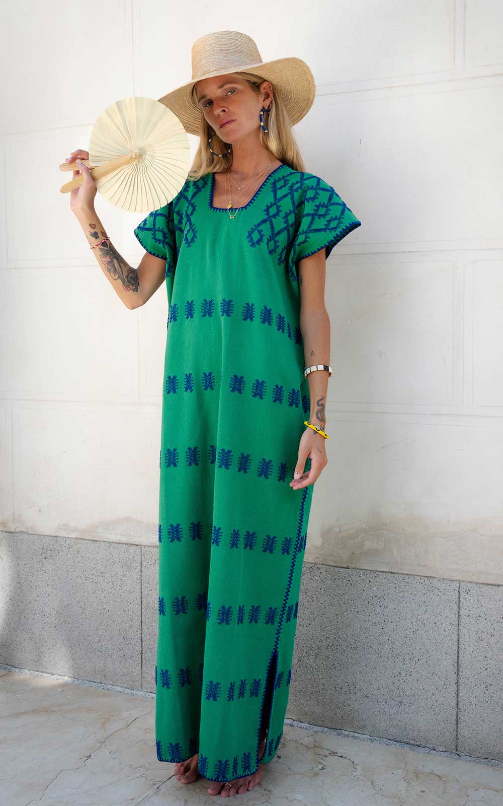 This single-panel maxi dress, an icon of traditional Oaxacan dress, has won over fashion editors around the world for its timeless silhouette and authentic character. In this edition, we've subtly lengthened the pattern to stylize the figure and provide a more elegant and flattering drape.