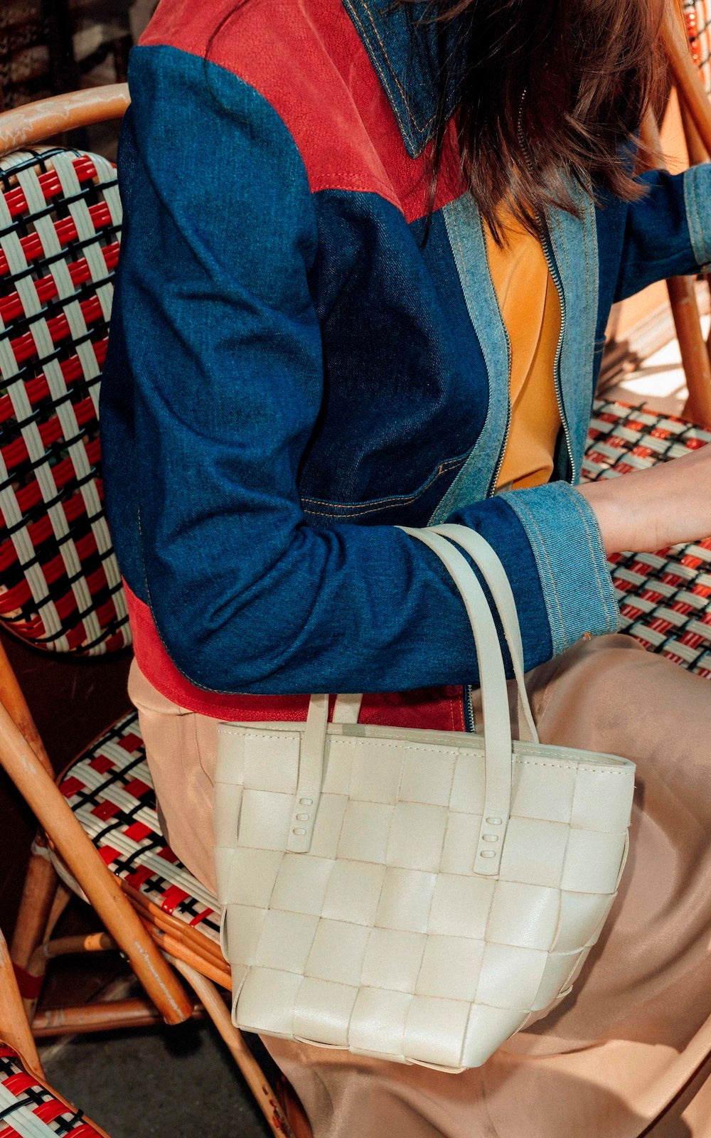 El bolso Japan Mini es una reinterpretación del clásico Japan Tote de Dragon Diffusion, manteniendo su esencia artesanal en un formato más ligero y urbano. Tejido a mano en piel de vacuno suave, este modelo presenta un diseño de tiras cruzadas que combina técnica tradicional con una estética contemporánea.