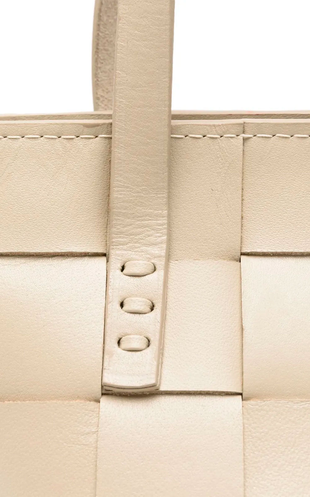 El tono pearl, un beige suave con matices marfil, aporta luminosidad y un aire sereno que realza la textura del cuero natural. Este mini tote, de líneas depuradas y proporciones equilibradas, es ideal tanto para looks diarios como para ocasiones más especiales, adaptándose con elegancia a cualquier estilo o temporada.