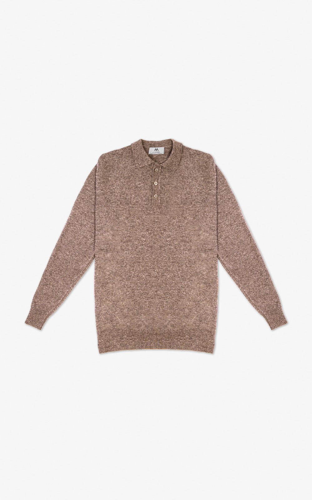 El diseño presenta cuello pico tipo polo, que aporta un aire relajado y refinado a la silueta. La manga larga y el corte ligeramente holgado ofrecen mayor confort y libertad de movimiento, creando un equilibrio perfecto entre estructura y fluidez.