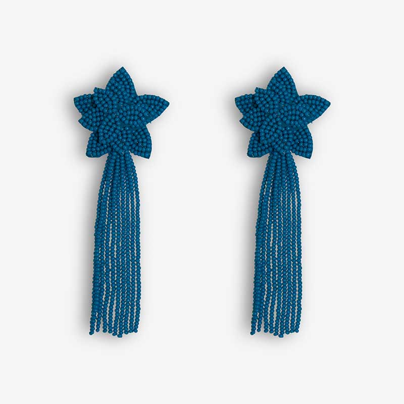 Long beaded earring with a star shape at the top, handcrafted in India. They do not have the option of return or exchange.