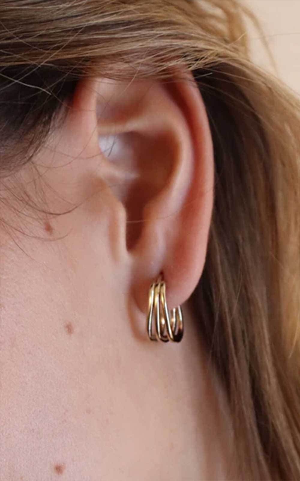 Small and discreet square hoop earrings that can be separated into 3 elements, in 3 micron gold plating.