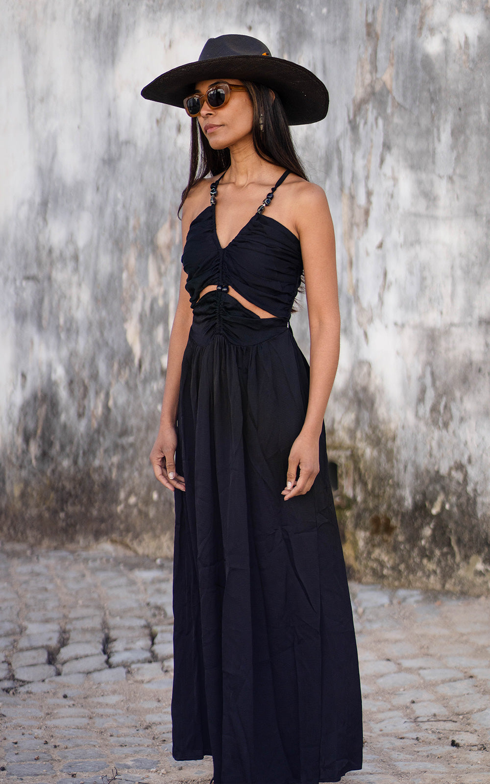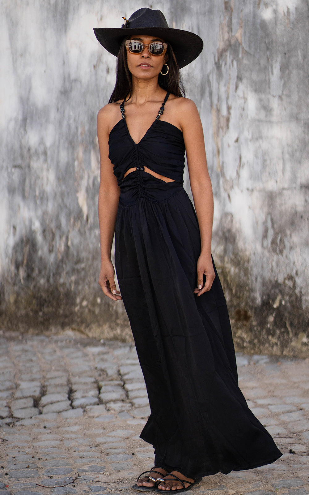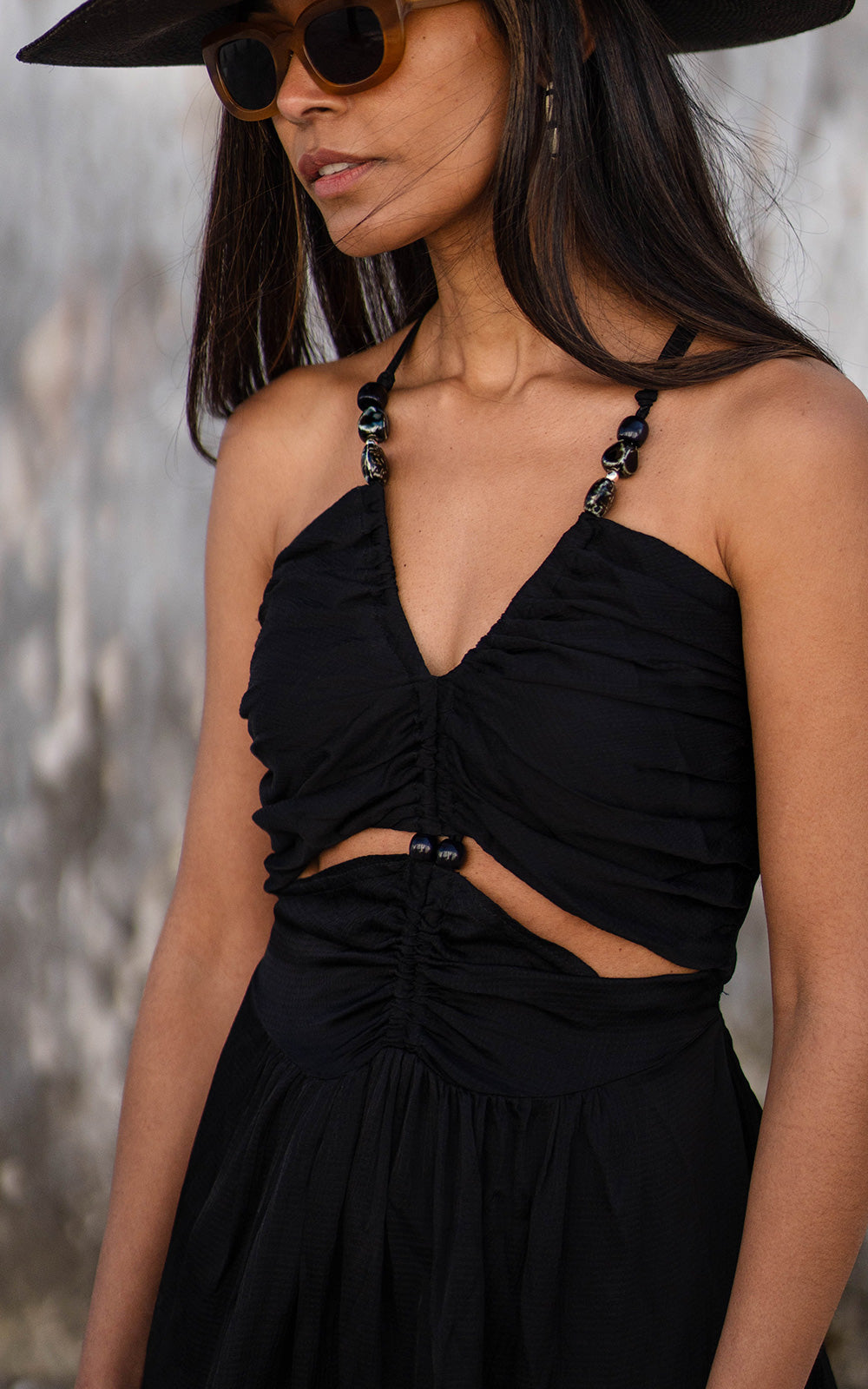 - Lingerie-style dress with a V-neckline and a cut-out waist.