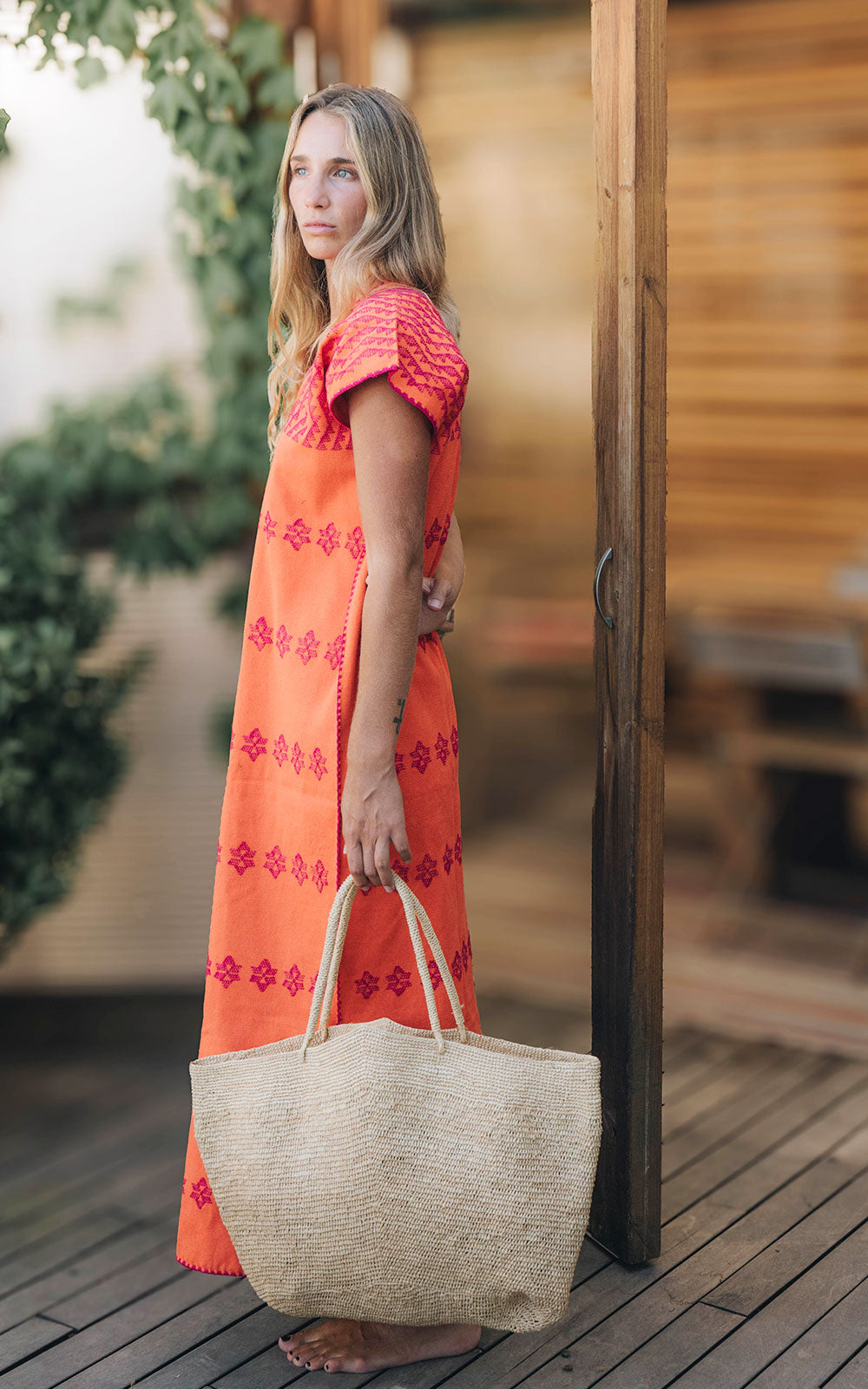 Bolso de tamaño oversize de rafia natural hecho a mano por artesanas de Madagascar. Este bolso tiene gran capacidad para darle un uso diario, llevarlo a la playa y de viaje. El interior es de rafia, no está forrado en tela. Dispone de un bolsillo interior. No tiene cierre.
