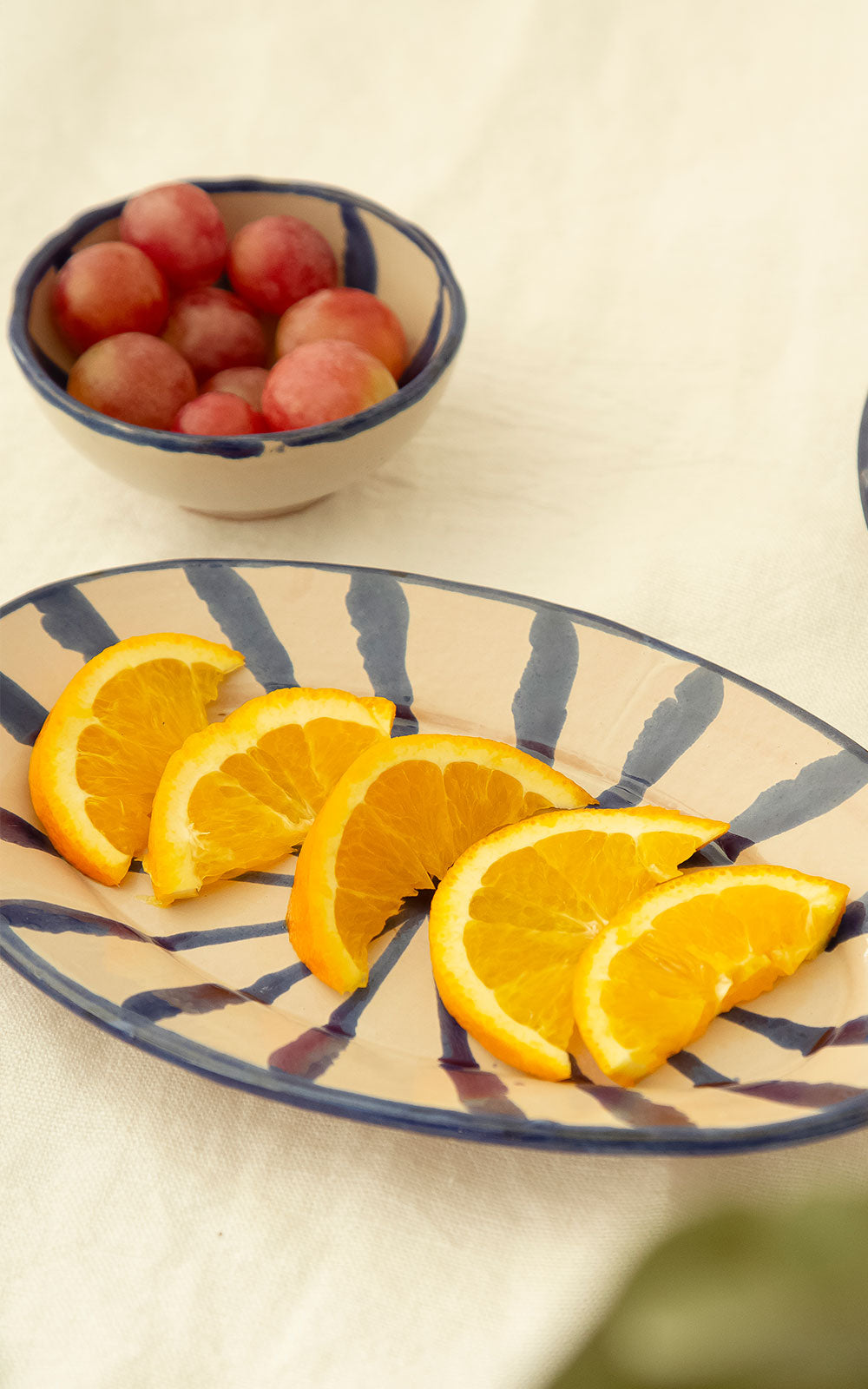 Bowl mini de cerámica con diseño de rayas pintado a mano en un taller de artesanos de Granada.