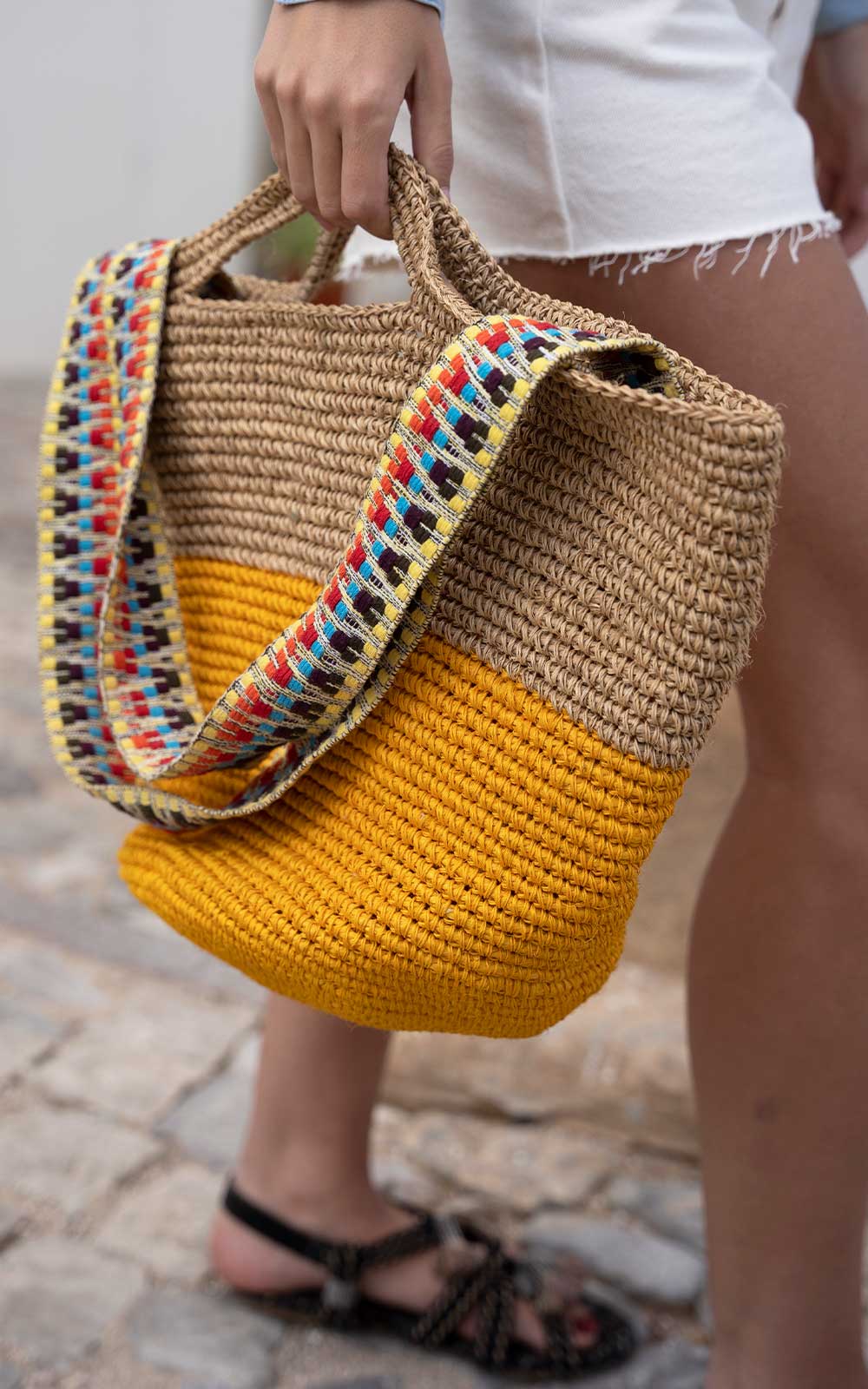 Capazo de fiqué con cinta de algodón elaborado a mano por artesanos en Colombia. Este tamaño es ideal para llevar la toalla, set de cremas solares, libro y botella térmica. Es el recomendado para ir a la playa o incluso para llevarlo por la ciudad si necesitas más espacio.