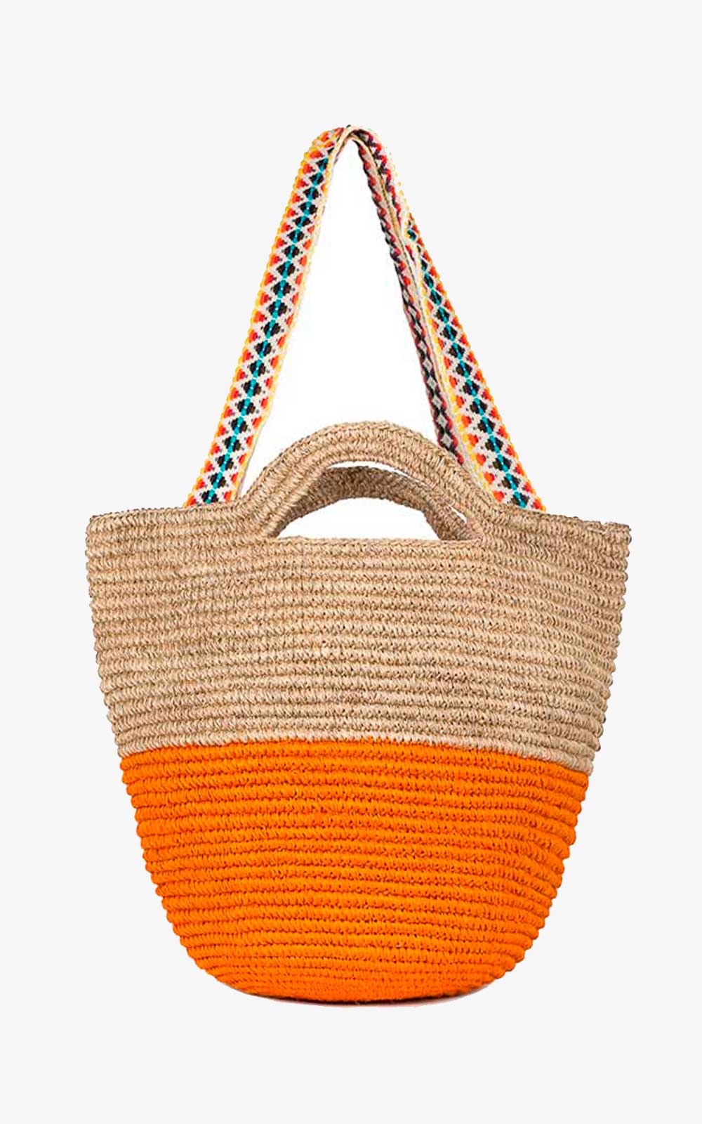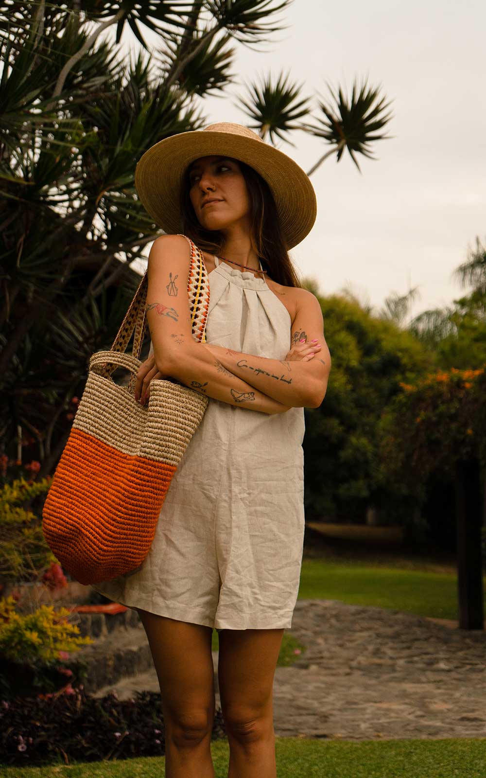 Capazo de fiqué con cinta de algodón elaborado a mano por artesanos en Colombia. Este tamaño es ideal para llevar la toalla, set de cremas solares, libro y botella térmica. Es el recomendado para ir a la playa o incluso para llevarlo por la ciudad si necesitas más espacio.
