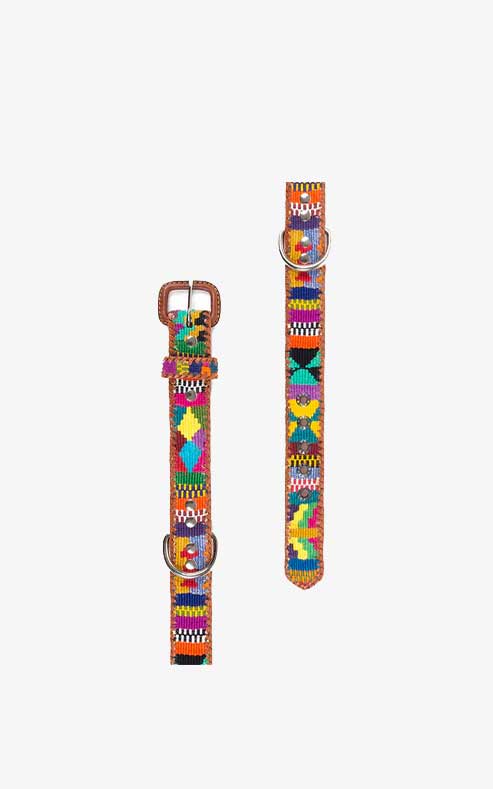 Los collares de perro étnicos están hechos a mano por artesanos de pequeñas comunidades de Guatemala. Este artículo artesanal procede de las tiras de cinturones étnicos que se constituyen como el producto estrella de las colecciones de la marca.