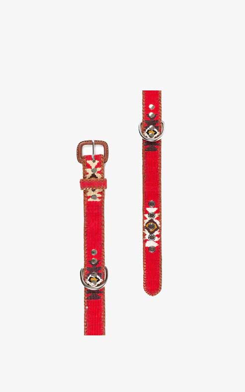 Los collares de perro étnicos están hechos a mano por artesanos de pequeñas comunidades de Guatemala. Este artículo artesanal procede de las tiras de cinturones étnicos que se constituyen como el producto estrella de las colecciones de la marca.