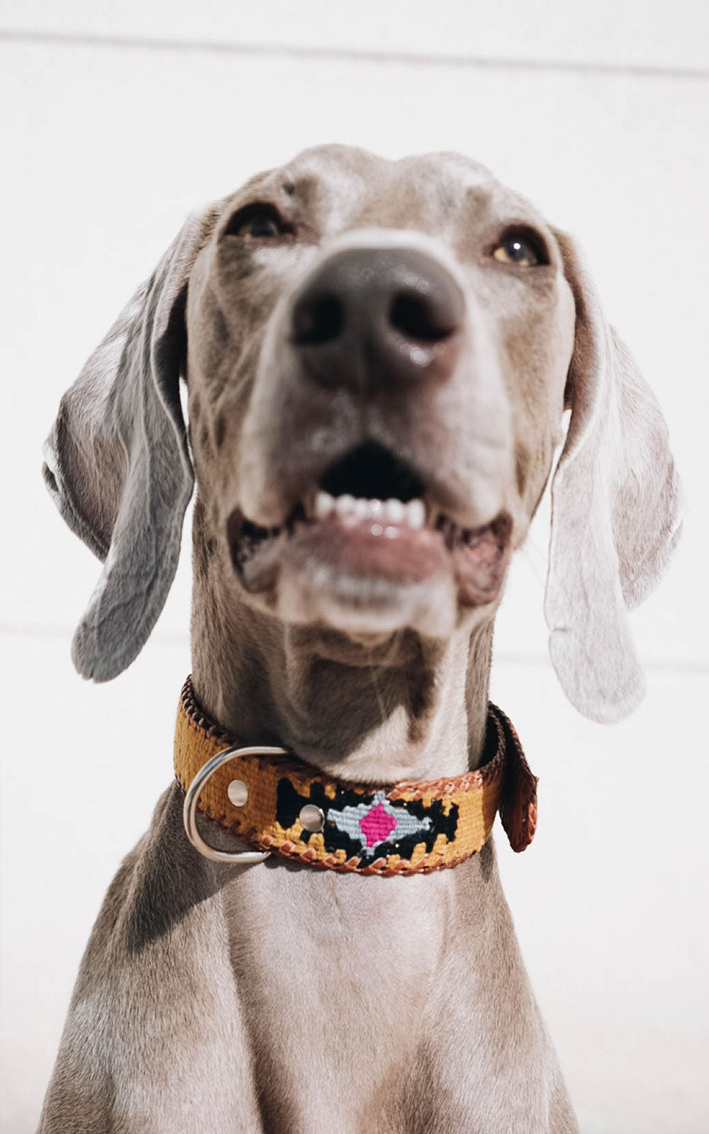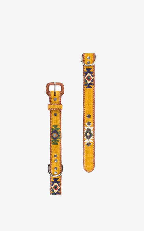 Los collares de perro étnicos están hechos a mano por artesanos de pequeñas comunidades de Guatemala. Este artículo artesanal procede de las tiras de cinturones étnicos que se constituyen como el producto estrella de las colecciones de la marca.