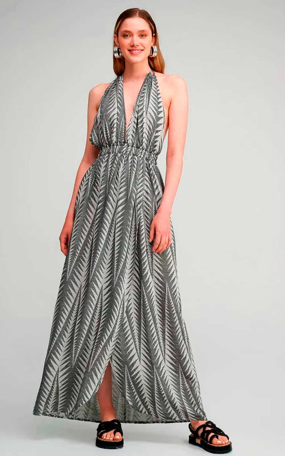 El vestido Gaia de escote abierto es lo último en ropa de vacaciones. Fácil de llevar desde la playa hasta las copas de medianoche, este vestido presenta un escote pronunciado y una espalda abierta que añaden un toque sexy al diseño. Combínalo con tus sandalias favoritas. Este vestido es de la excusiva firma griega Pearl & Caviar