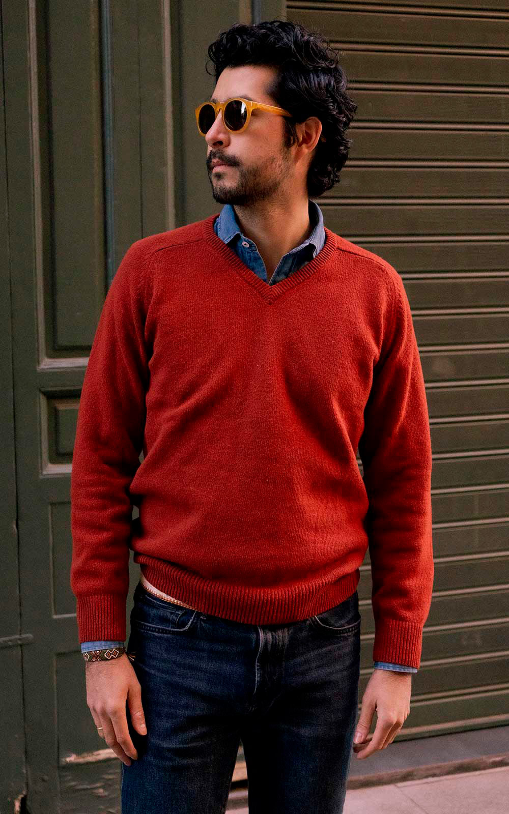 El diseño de cuello en pico le confiere un aire clásico y refinado, ideal para combinar con una de nuestras camisas Oxford de algodón o con una polera de punto piqué, logrando un look cuidado y relajado.
