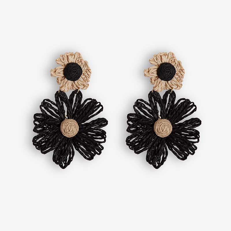 Pendiente de rafia natural con dos margaritas elaborado a mano en la India. No tienen opción a devolución ni cambio.