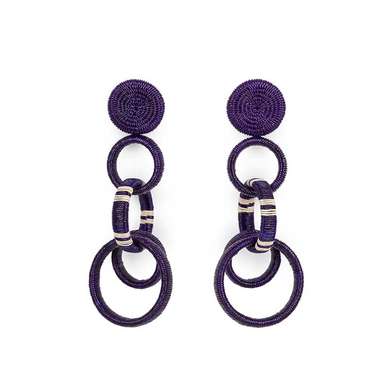 Pendiente medallón con triple aros gruesos elaborado a mano con palma de werrengue por artesanos de Colombia.
