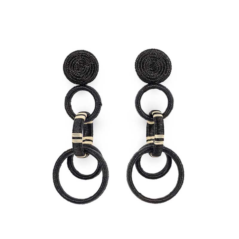 Pendiente medallón con triple aros gruesos elaborado a mano con palma de werrengue por artesanos de Colombia.