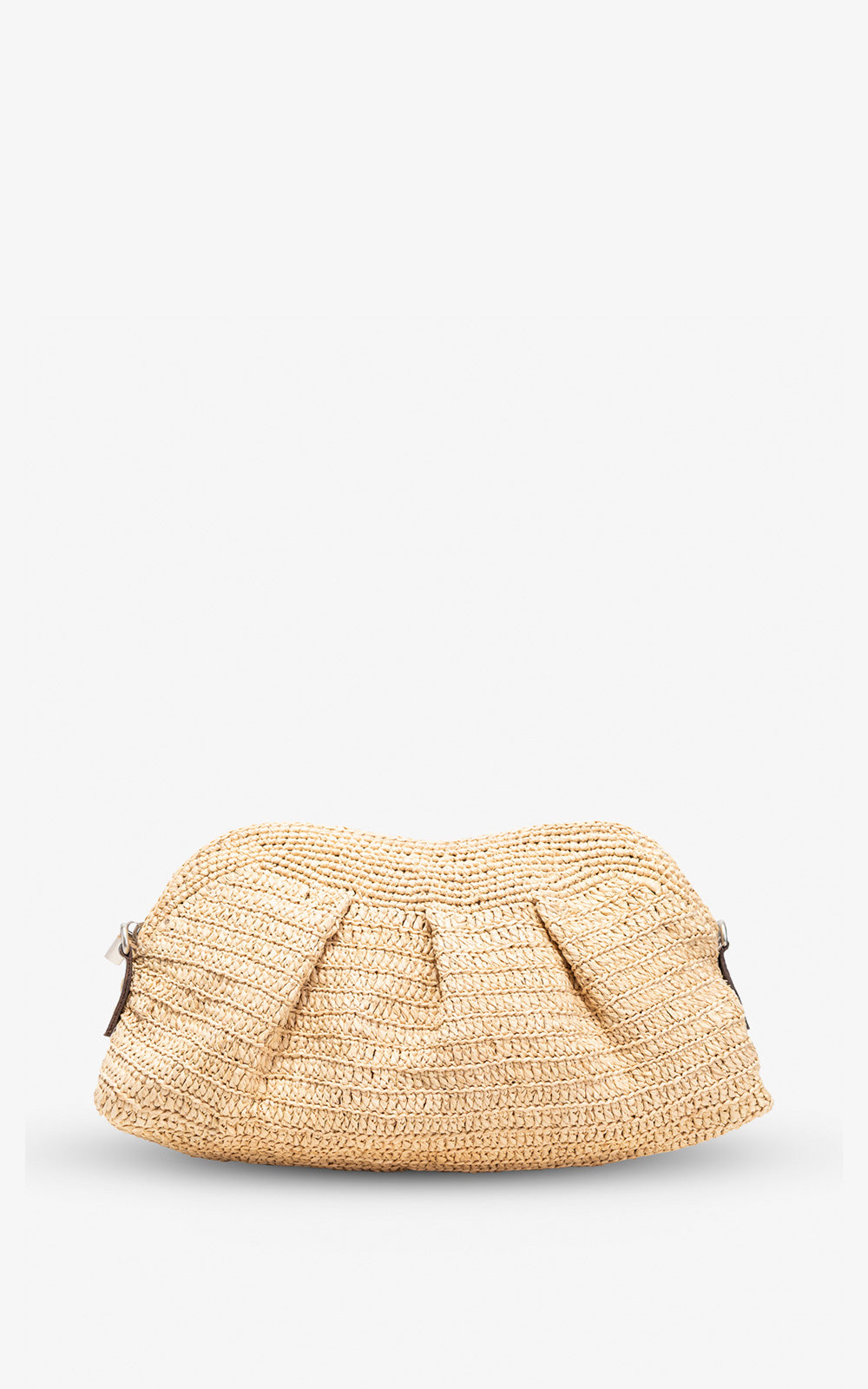 Maxi bolso de mano o "pouch" realizado artesanalmente en Madagascar por una comunidad de artesanos expertos. El cierre es con cremallera y tiene interior forrado en tela.